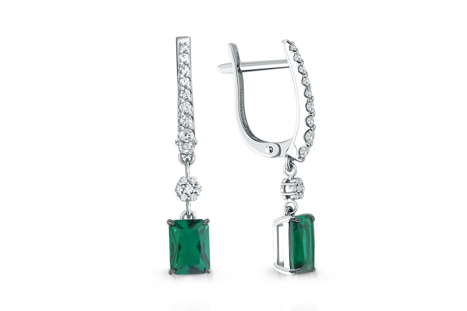 Мастера компании NEWGOLD, приложив всё свое мастерство и искусство, создали для Вас на нашем собственном производстве Серьги из белого золота с 2 изумрудами и 32 фианитами.