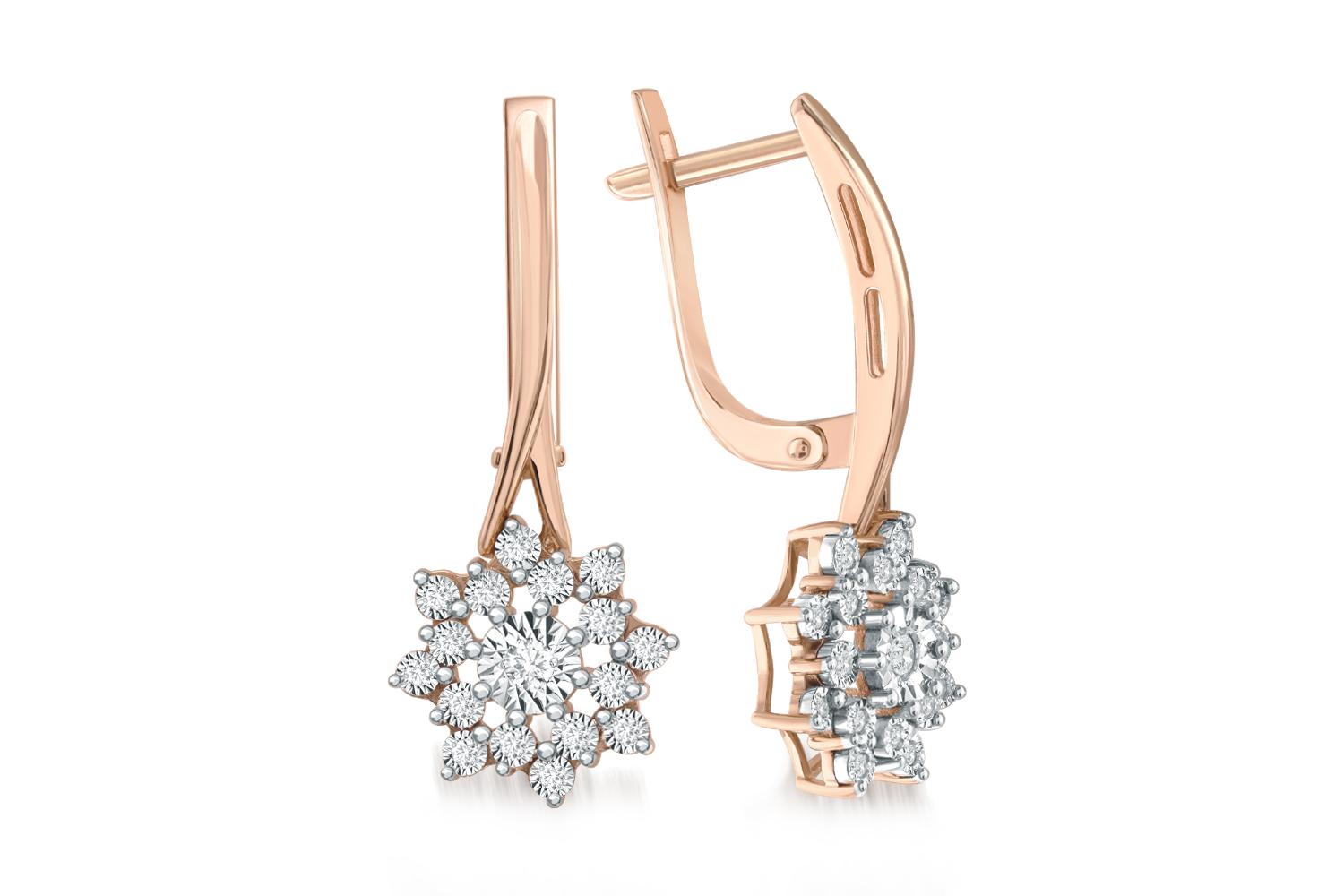 Мастера компании NEWGOLD, приложив всё свое мастерство и искусство, создали для Вас на нашем собственном производстве Серьги из красного золота с 34 бриллиантами.