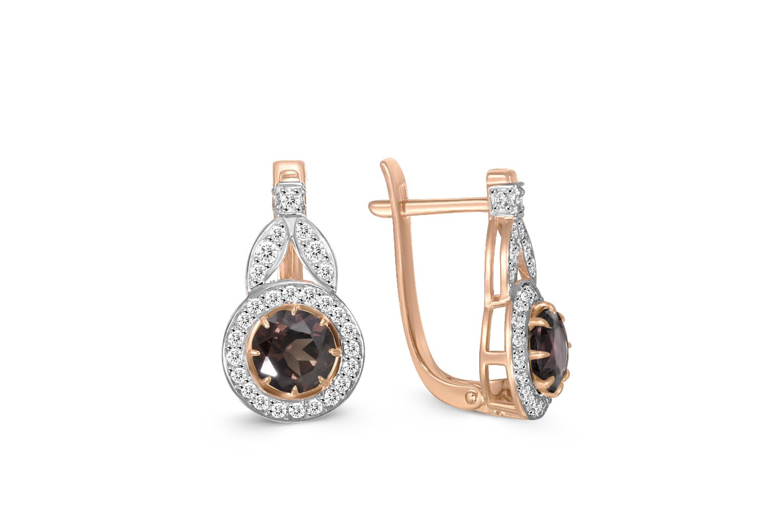 Мастера компании NEWGOLD, приложив всё свое мастерство и искусство, создали для Вас на нашем собственном производстве Серьги из красного золота с 2 раухтопазами и 58 фианитами.