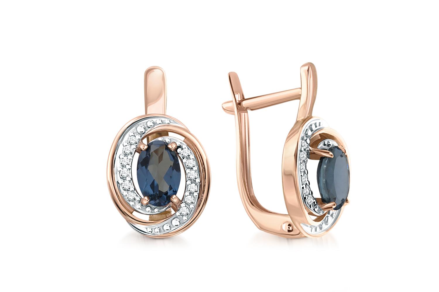 Мастера компании NEWGOLD, приложив всё свое мастерство и искусство, создали для Вас на нашем собственном производстве Серьги из красного золота с 2 топазами лондон и 24 фианитами.