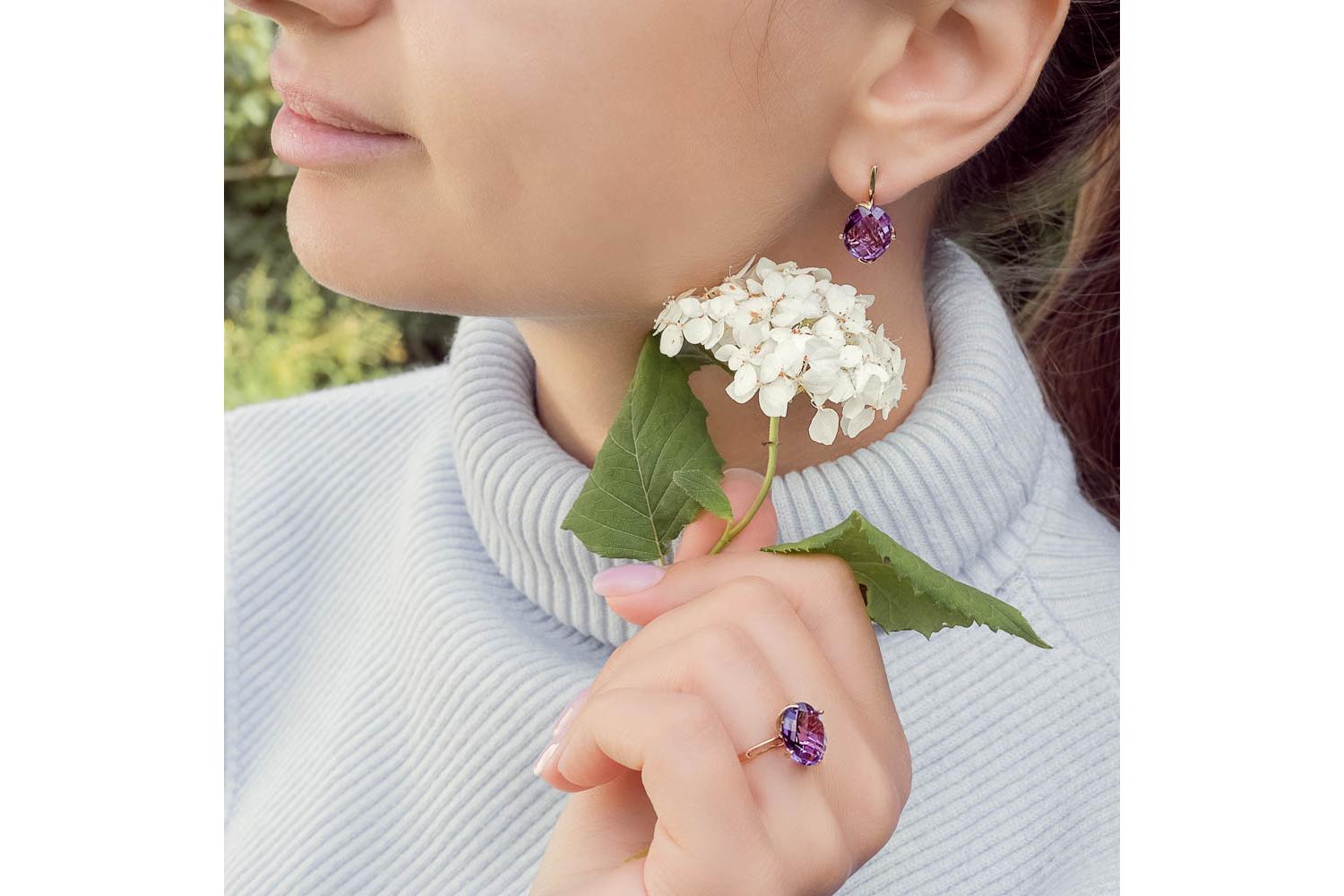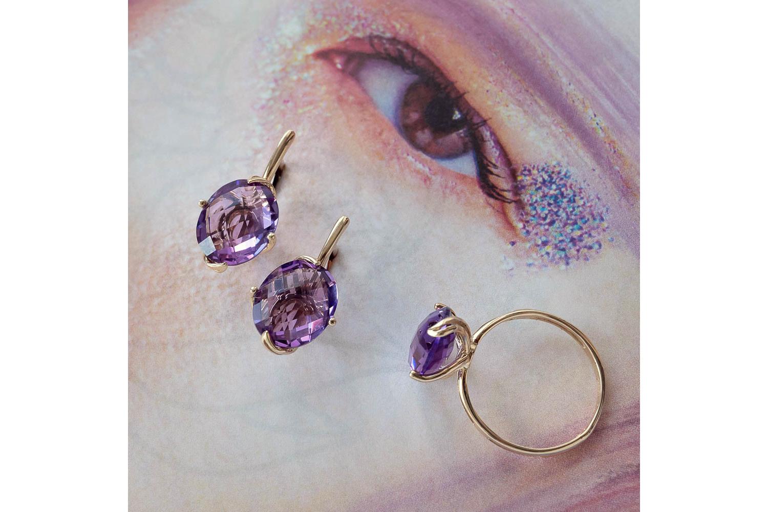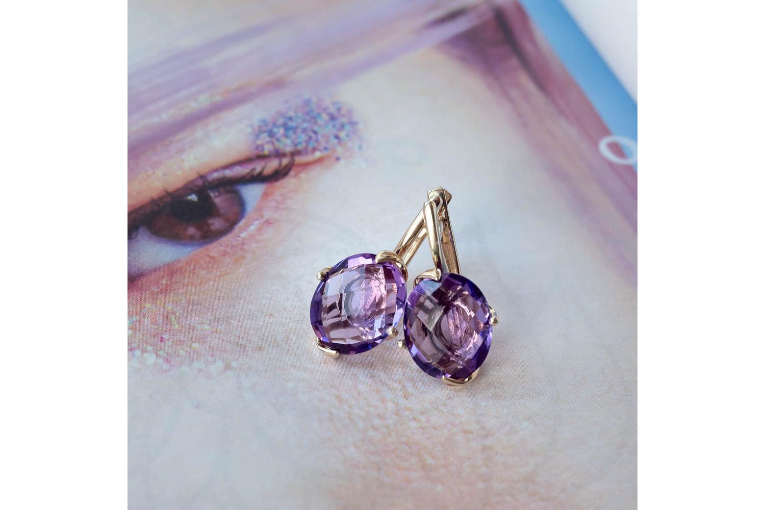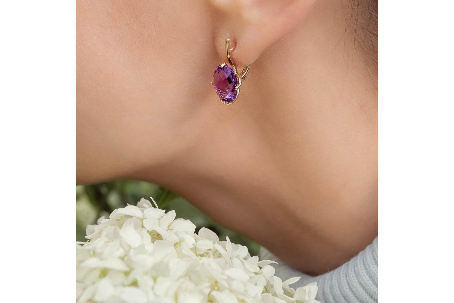 Мастера компании NEWGOLD, приложив всё свое мастерство и искусство, создали для Вас на нашем собственном производстве Серьги из жёлтого золота с 2 аметистами.