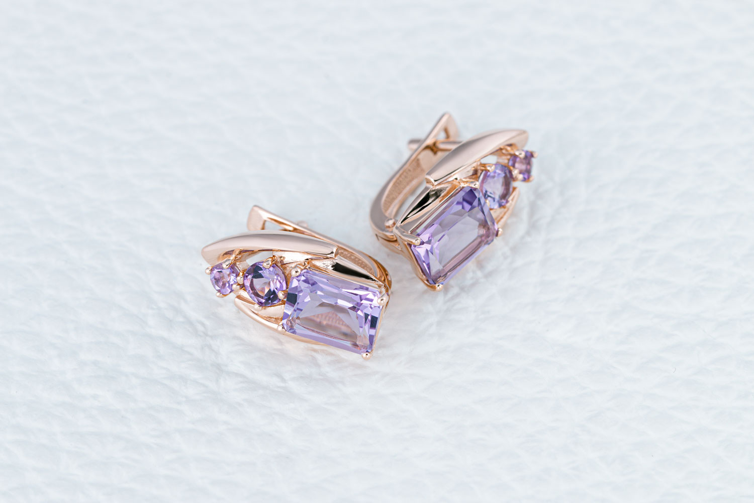 Мастера компании NEWGOLD, приложив всё свое мастерство и искусство, создали для Вас на нашем собственном производстве Серьги из красного золота с 6 аметистами.