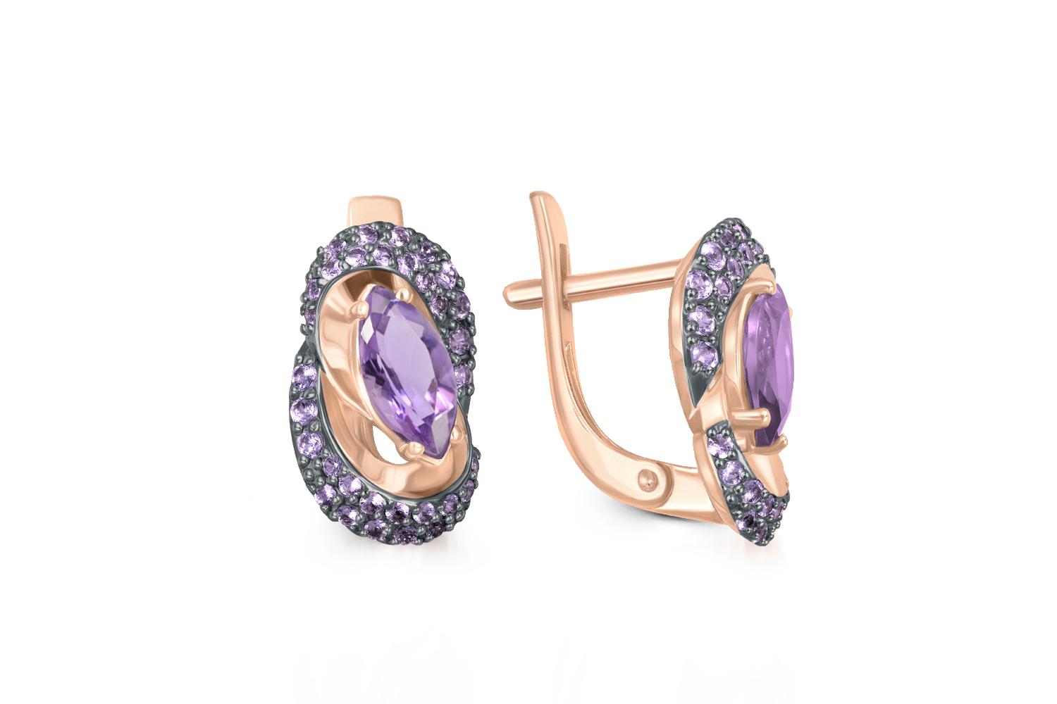 Мастера компании NEWGOLD, приложив всё свое мастерство и искусство, создали для Вас на нашем собственном производстве Серьги из красного золота с 2 аметистами и 64 фианитами.
