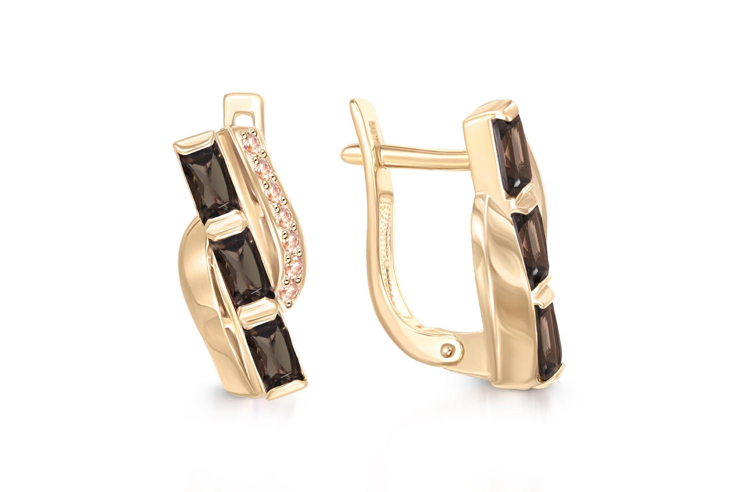 Мастера компании NEWGOLD, приложив всё свое мастерство и искусство, создали для Вас на нашем собственном производстве Серьги из жёлтого золота с 6 раухтопазами и 14 фианитами.