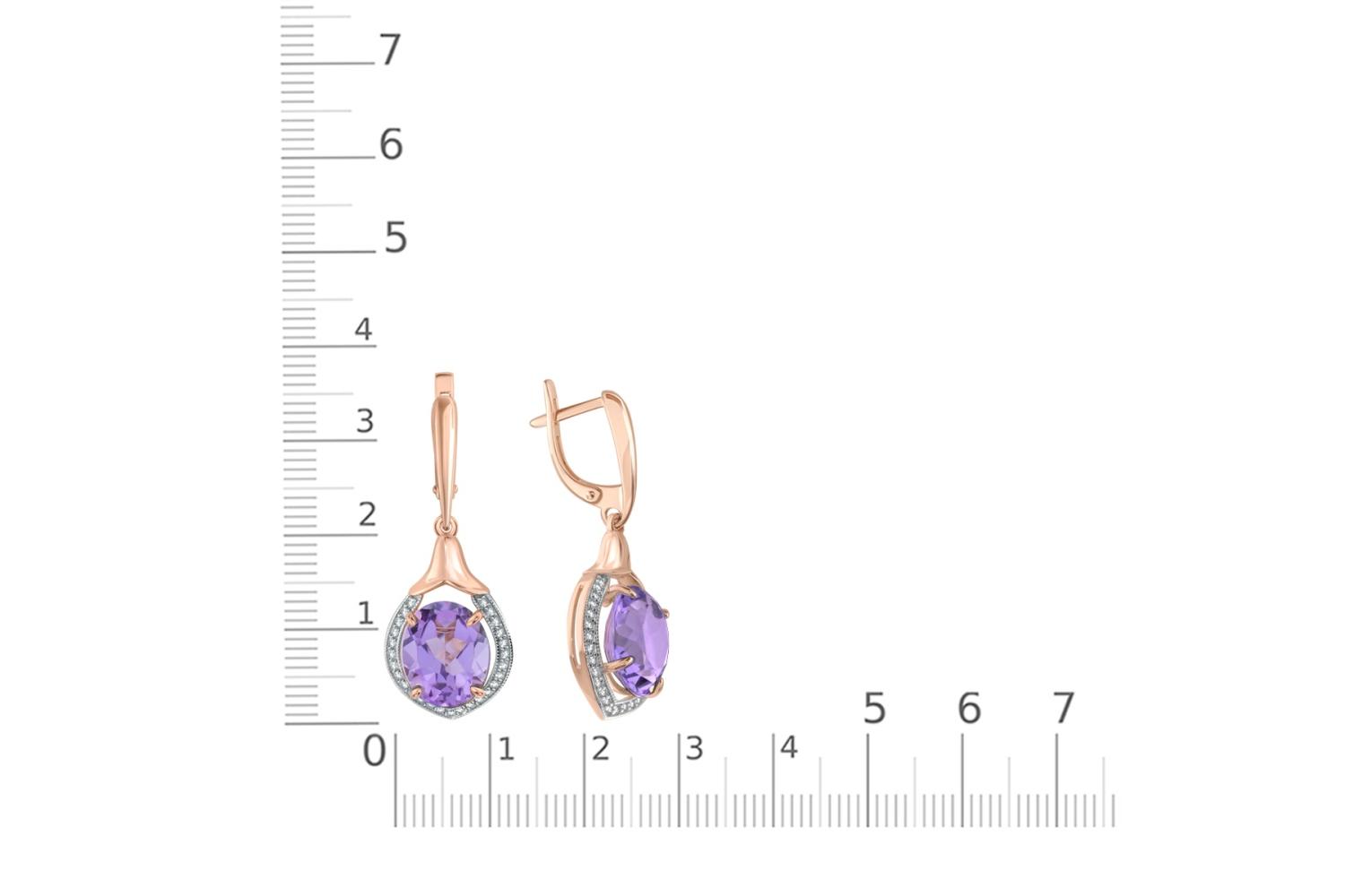 Мастера компании NEWGOLD, приложив всё свое мастерство и искусство, создали для Вас на нашем собственном производстве Серьги из красного золота с 2 аметистами и 54 фианитами.