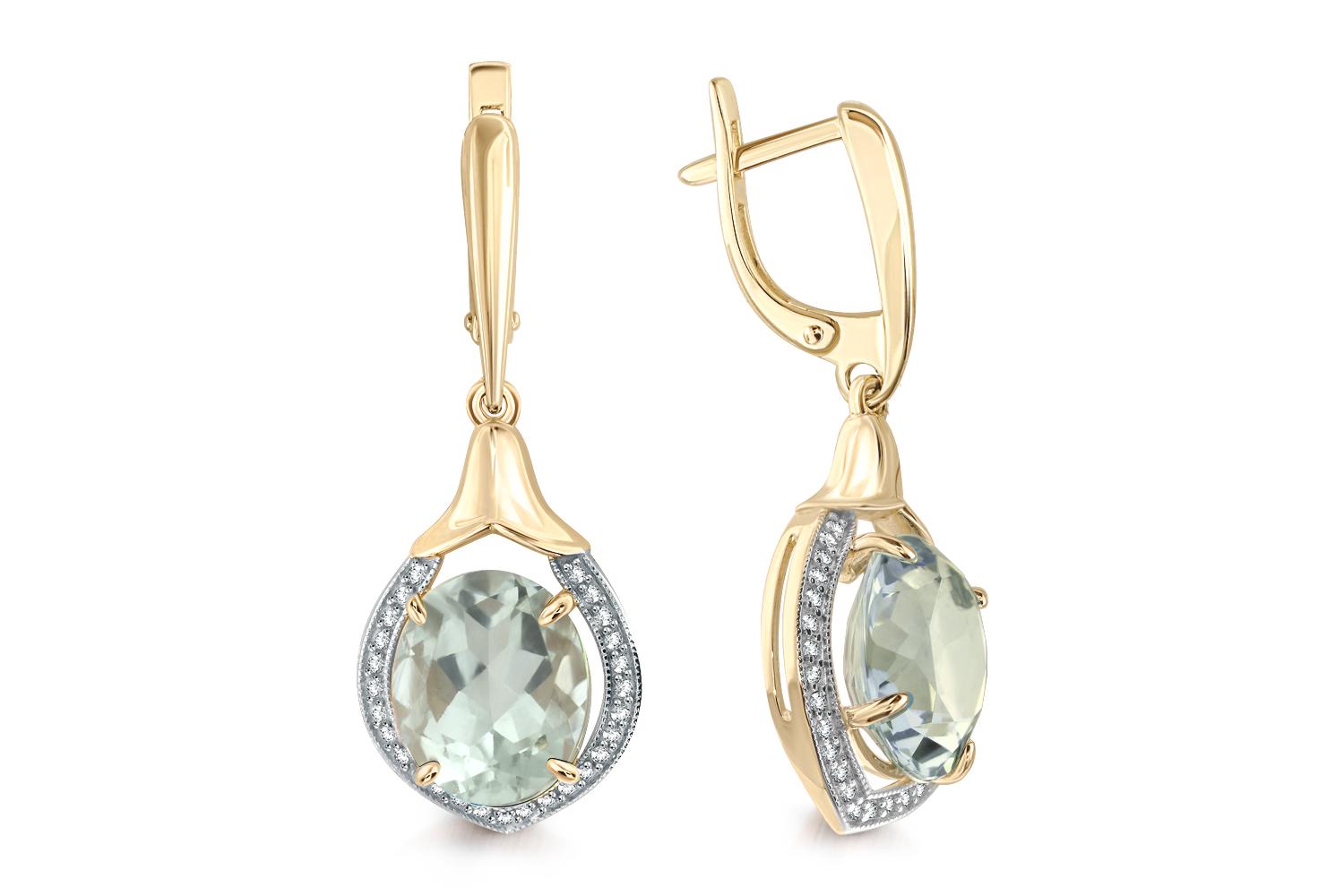 Мастера компании NEWGOLD, приложив всё свое мастерство и искусство, создали для Вас на нашем собственном производстве Серьги из жёлтого золота с 2 празиолитами и 54 фианитами.