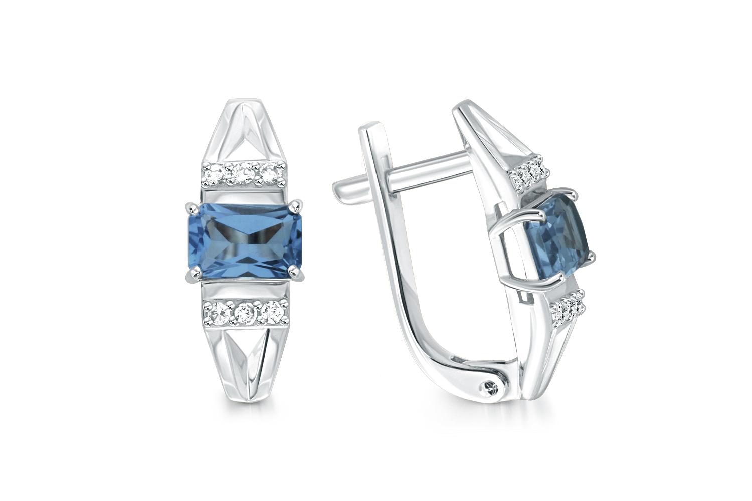 Мастера компании NEWGOLD, приложив всё свое мастерство и искусство, создали для Вас на нашем собственном производстве Серьги из белого золота с 2 топазами лондон и 12 фианитами.