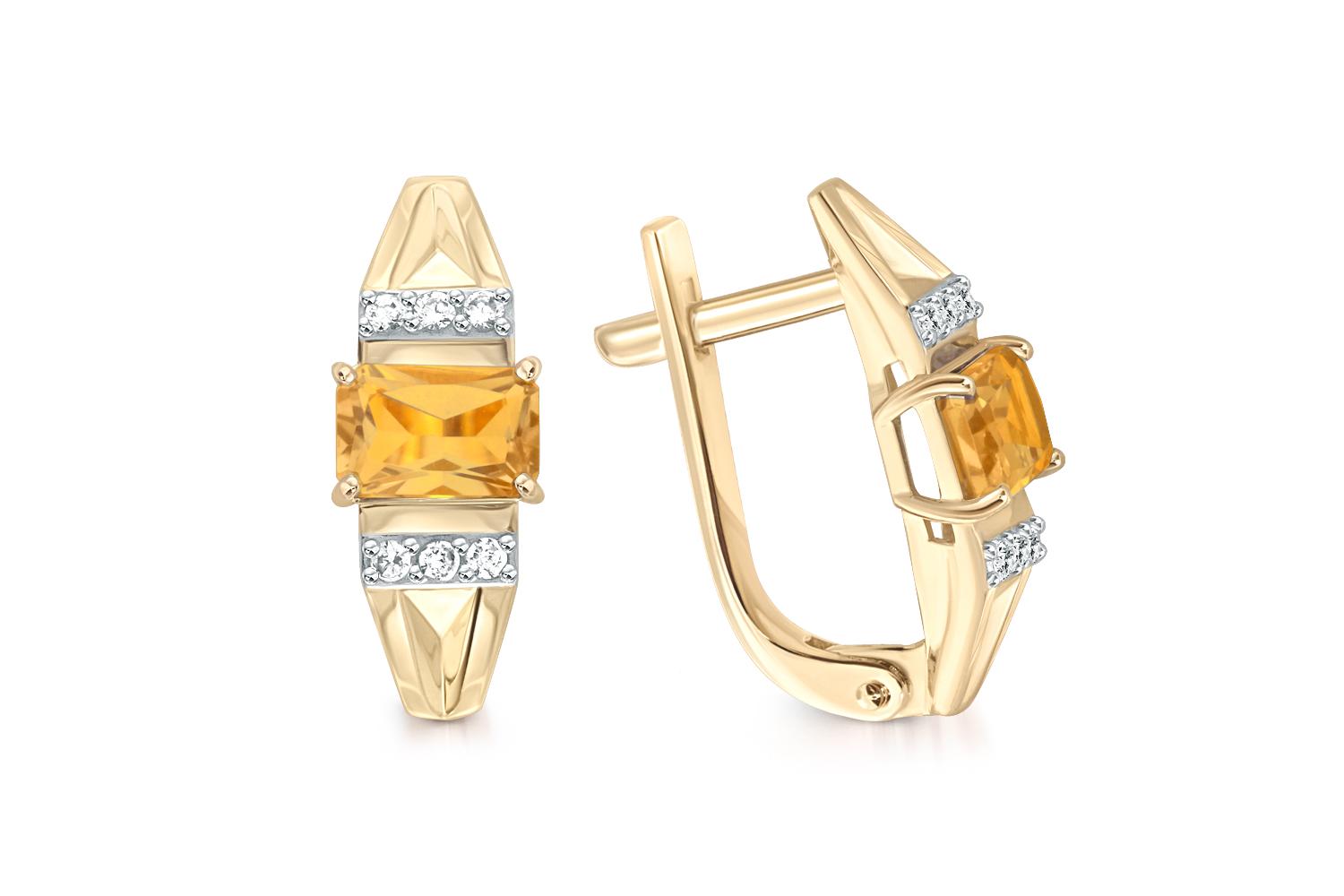 Мастера компании NEWGOLD, приложив всё свое мастерство и искусство, создали для Вас на нашем собственном производстве Серьги из жёлтого золота с 2 цитринами и 12 фианитами.