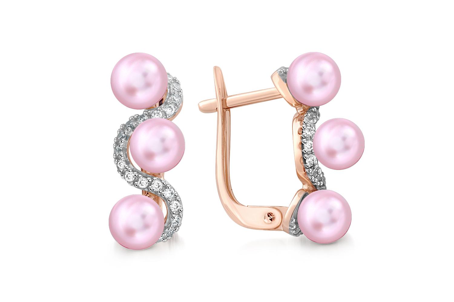 Мастера компании NEWGOLD, приложив всё свое мастерство и искусство, создали для Вас на нашем собственном производстве Серьги из красного золота с 6 жемчужинами и 40 фианитами.