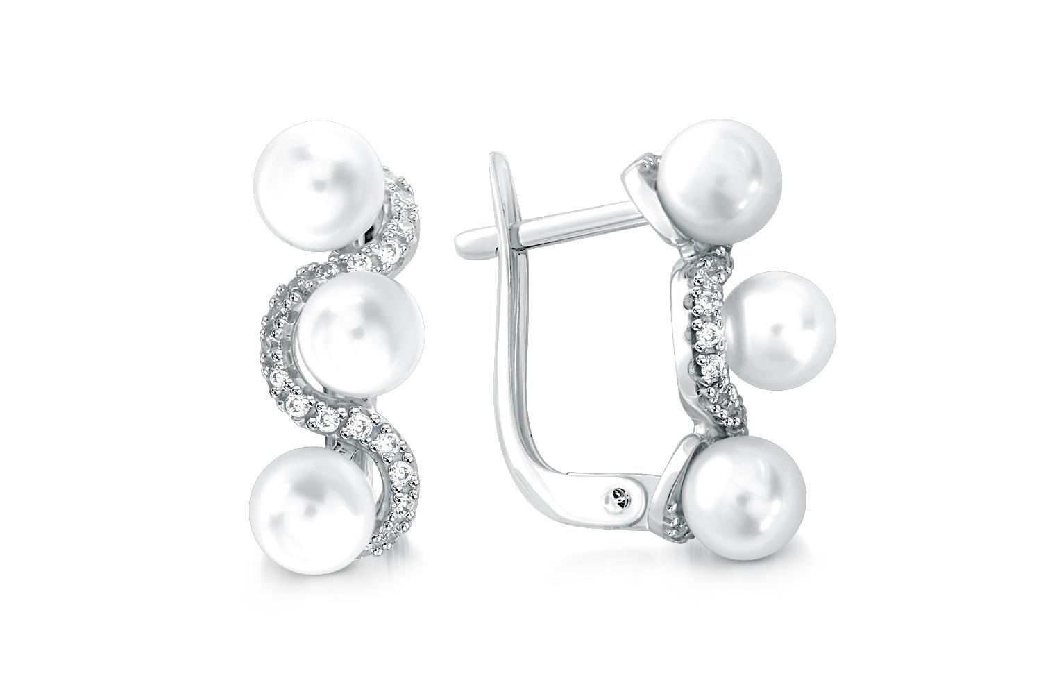 Мастера компании NEWGOLD, приложив всё свое мастерство и искусство, создали для Вас на нашем собственном производстве Серьги из белого золота с 6 жемчужинами и 40 фианитами.