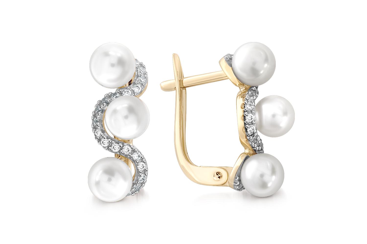 Мастера компании NEWGOLD, приложив всё свое мастерство и искусство, создали для Вас на нашем собственном производстве Серьги из жёлтого золота с 6 жемчужинами и 40 фианитами.