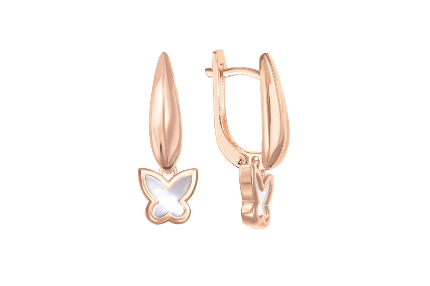 Мастера компании NEWGOLD, приложив всё свое мастерство и искусство, создали для Вас на нашем собственном производстве Серьги Бабочки из красного золота с перламутром.