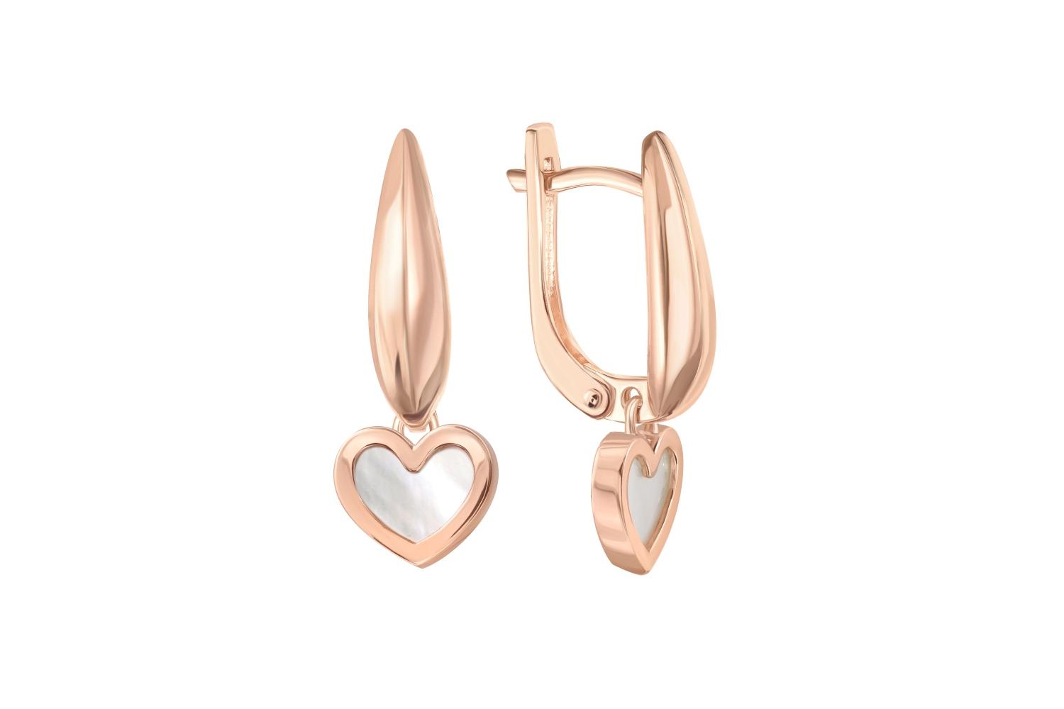 Мастера компании NEWGOLD, приложив всё свое мастерство и искусство, создали для Вас на нашем собственном производстве Серьги Сердца из красного золота с перламутром.