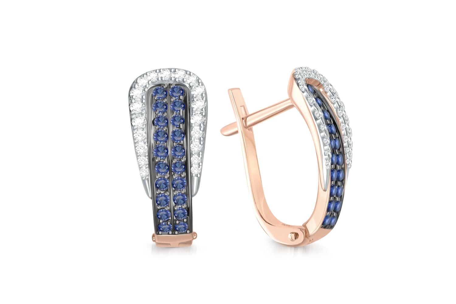 Мастера компании NEWGOLD, приложив всё свое мастерство и искусство, создали для Вас на нашем собственном производстве Серьги из красного золота с 40 сапфирами и 38 бриллиантами.