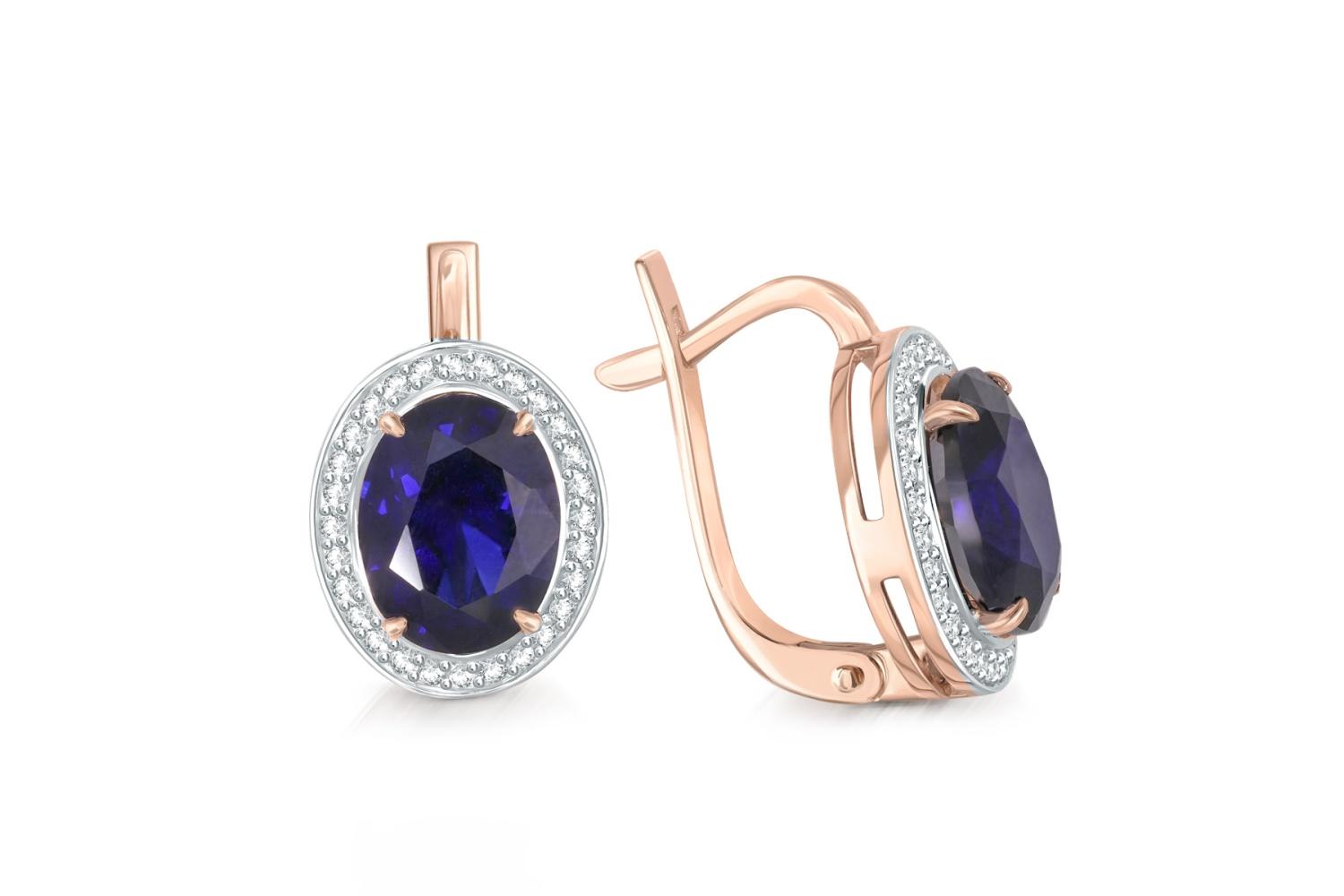 Мастера компании NEWGOLD, приложив всё свое мастерство и искусство, создали для Вас на нашем собственном производстве Серьги из красного золота с 2 корундами и 56 фианитами.