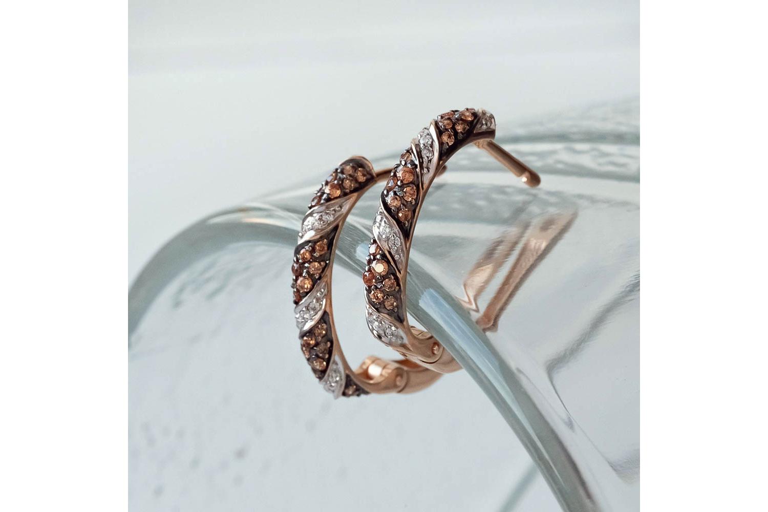 Мастера компании NEWGOLD, приложив всё свое мастерство и искусство, создали для Вас на нашем собственном производстве Серьги из красного золота с 82 фианитами.