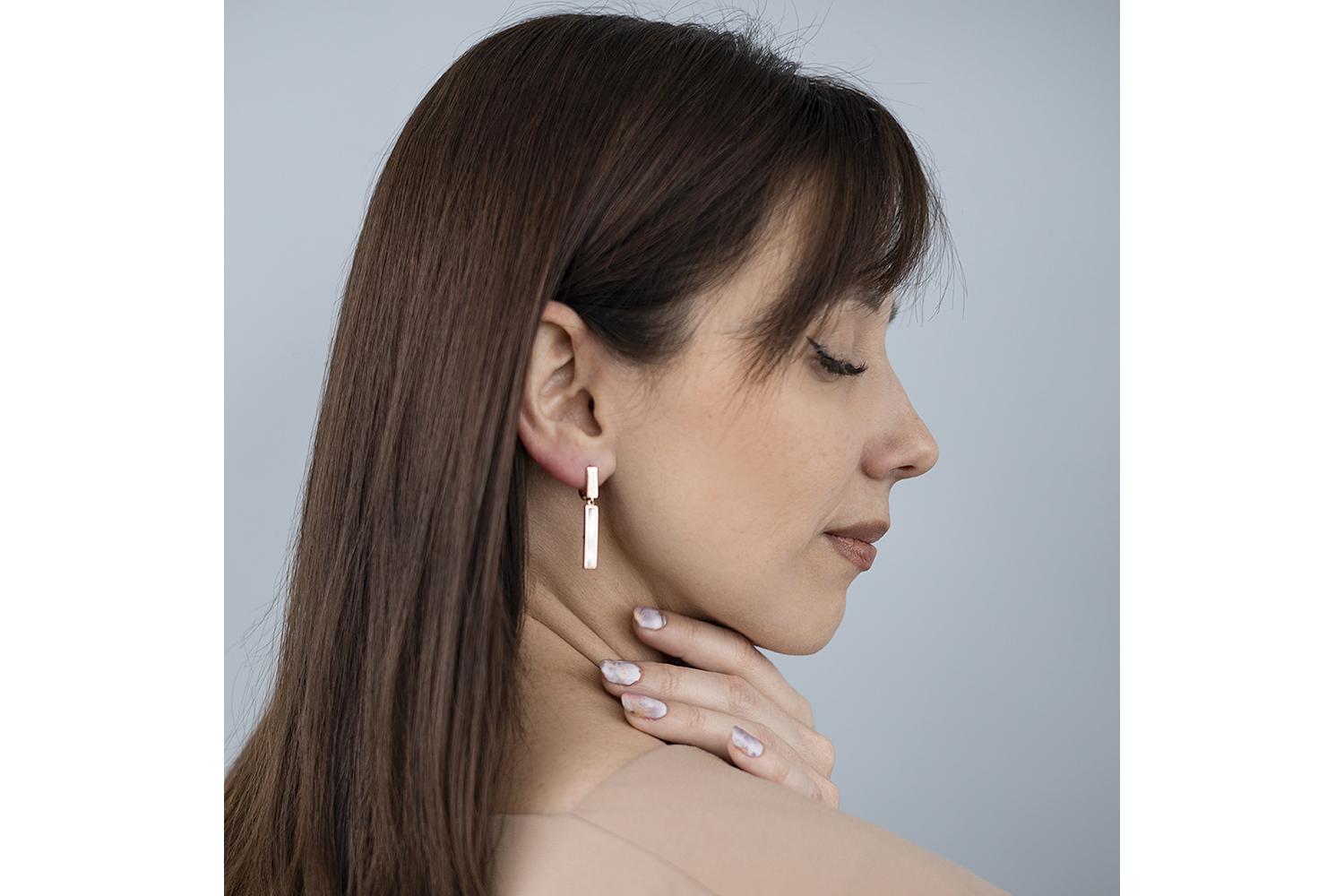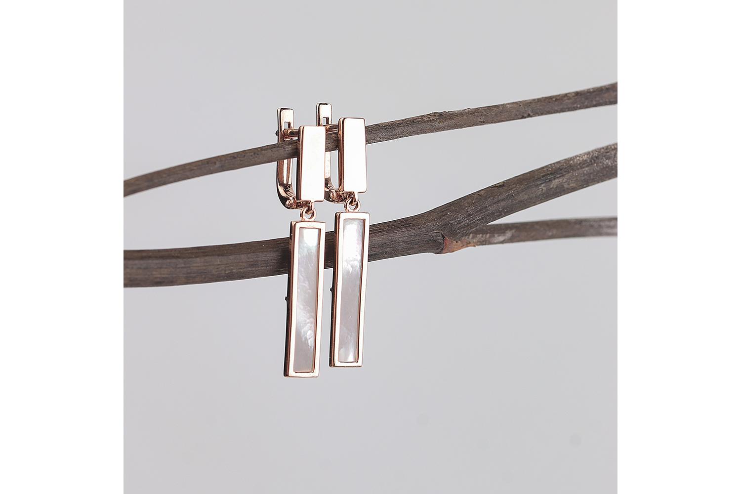 Мастера компании NEWGOLD, приложив всё свое мастерство и искусство, создали для Вас на нашем собственном производстве Серьги Прямоугольники из красного золота с перламутром.