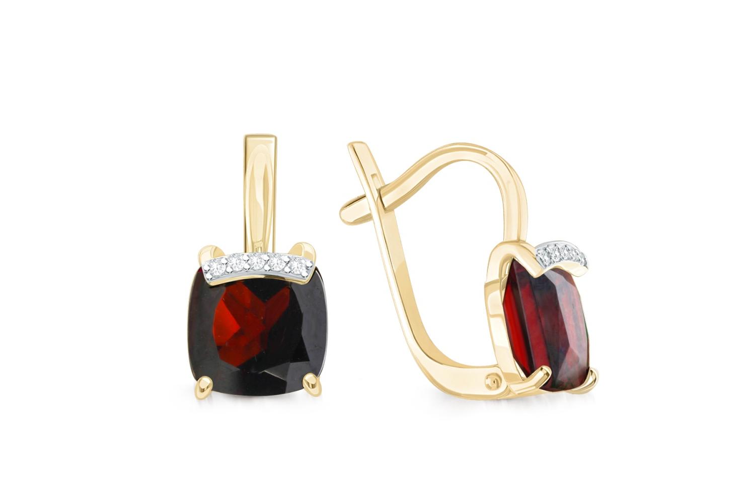 Мастера компании NEWGOLD, приложив всё свое мастерство и искусство, создали для Вас на нашем собственном производстве Серьги из жёлтого золота с 2 гранатами и 10 фианитами.