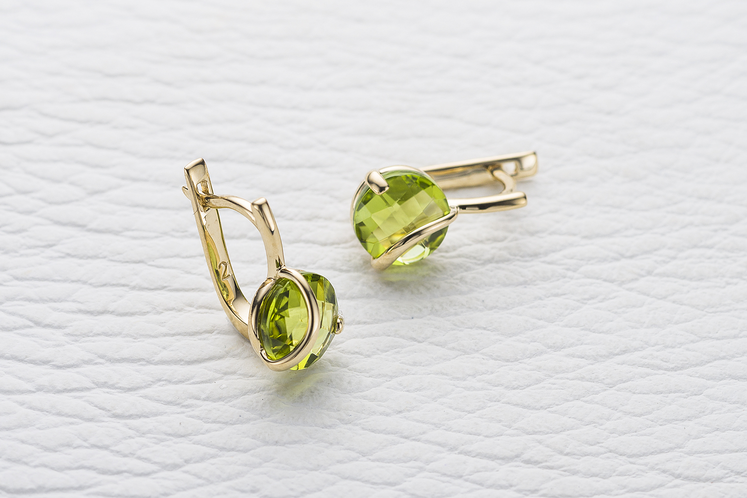 Мастера компании NEWGOLD, приложив всё свое мастерство и искусство, создали для Вас на нашем собственном производстве Серьги из жёлтого золота с 2 хризолитами.