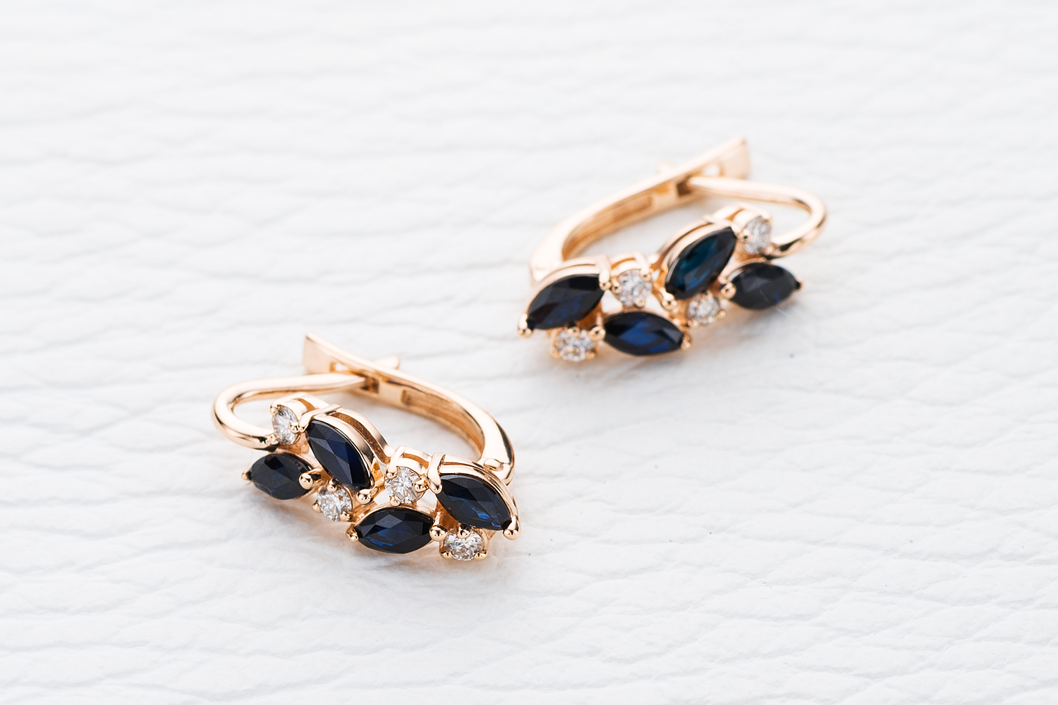Мастера компании NEWGOLD, приложив всё свое мастерство и искусство, создали для Вас на нашем собственном производстве Серьги из красного золота с 8 сапфирами и 8 бриллиантами.