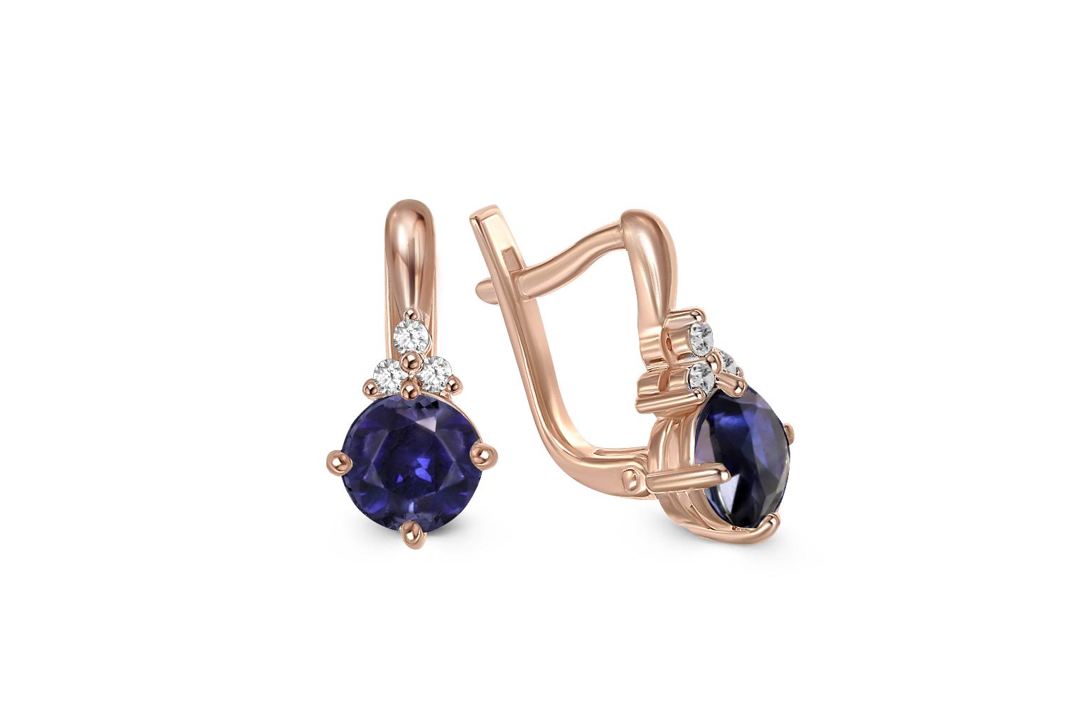 Мастера компании NEWGOLD, приложив всё свое мастерство и искусство, создали для Вас на нашем собственном производстве Серьги из красного золота с 2 сапфирами и 6 бриллиантами.