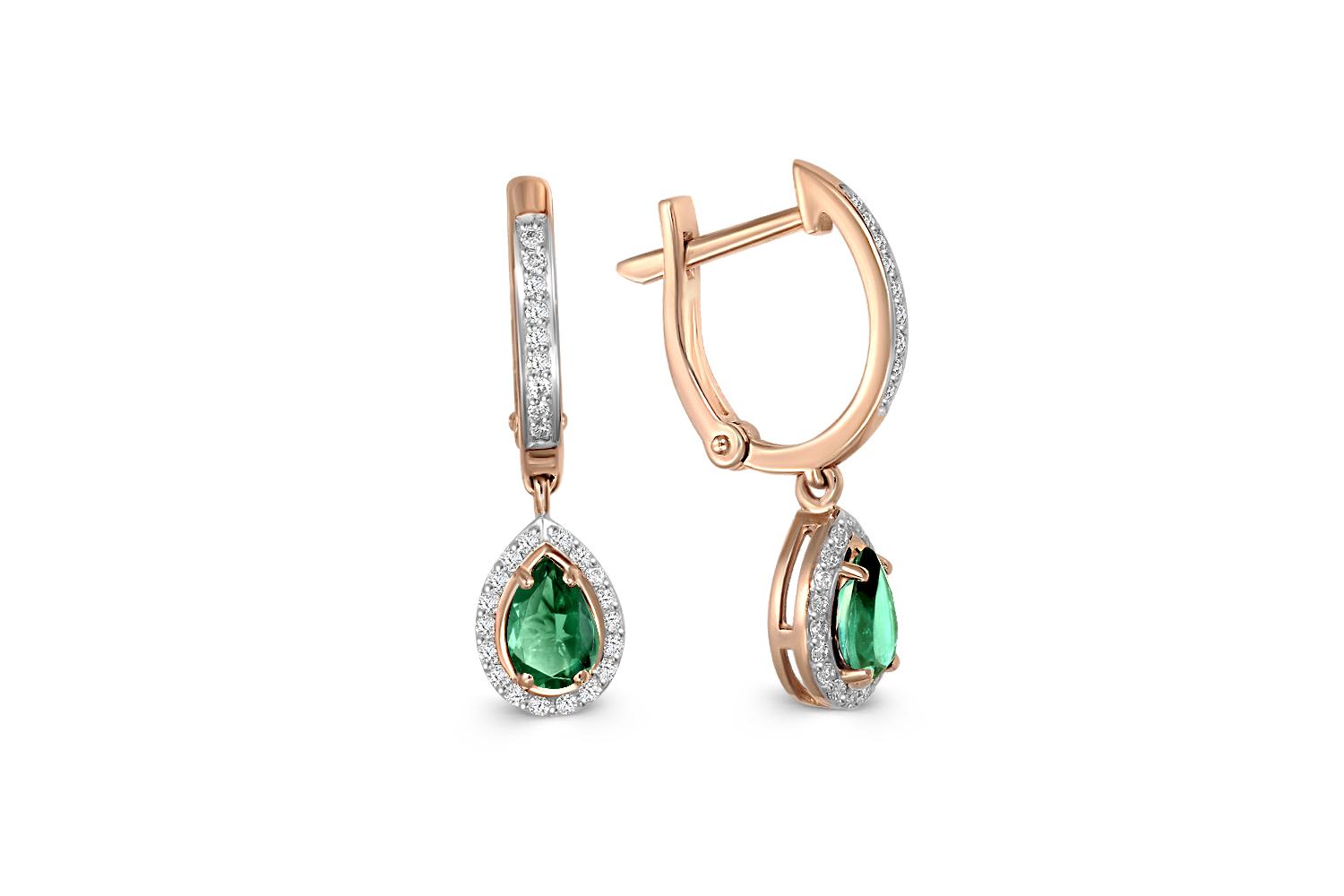 Мастера компании NEWGOLD, приложив всё свое мастерство и искусство, создали для Вас на нашем собственном производстве Серьги из красного золота с 2 изумрудами и 54 бриллиантами.