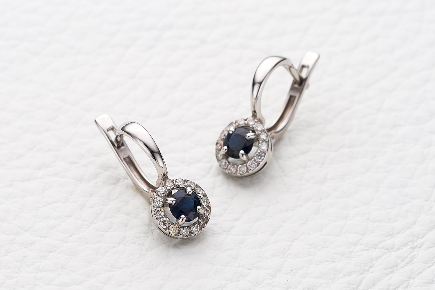 Мастера компании NEWGOLD, приложив всё свое мастерство и искусство, создали для Вас на нашем собственном производстве Серьги из белого золота с 2 сапфирами и 28 бриллиантами.