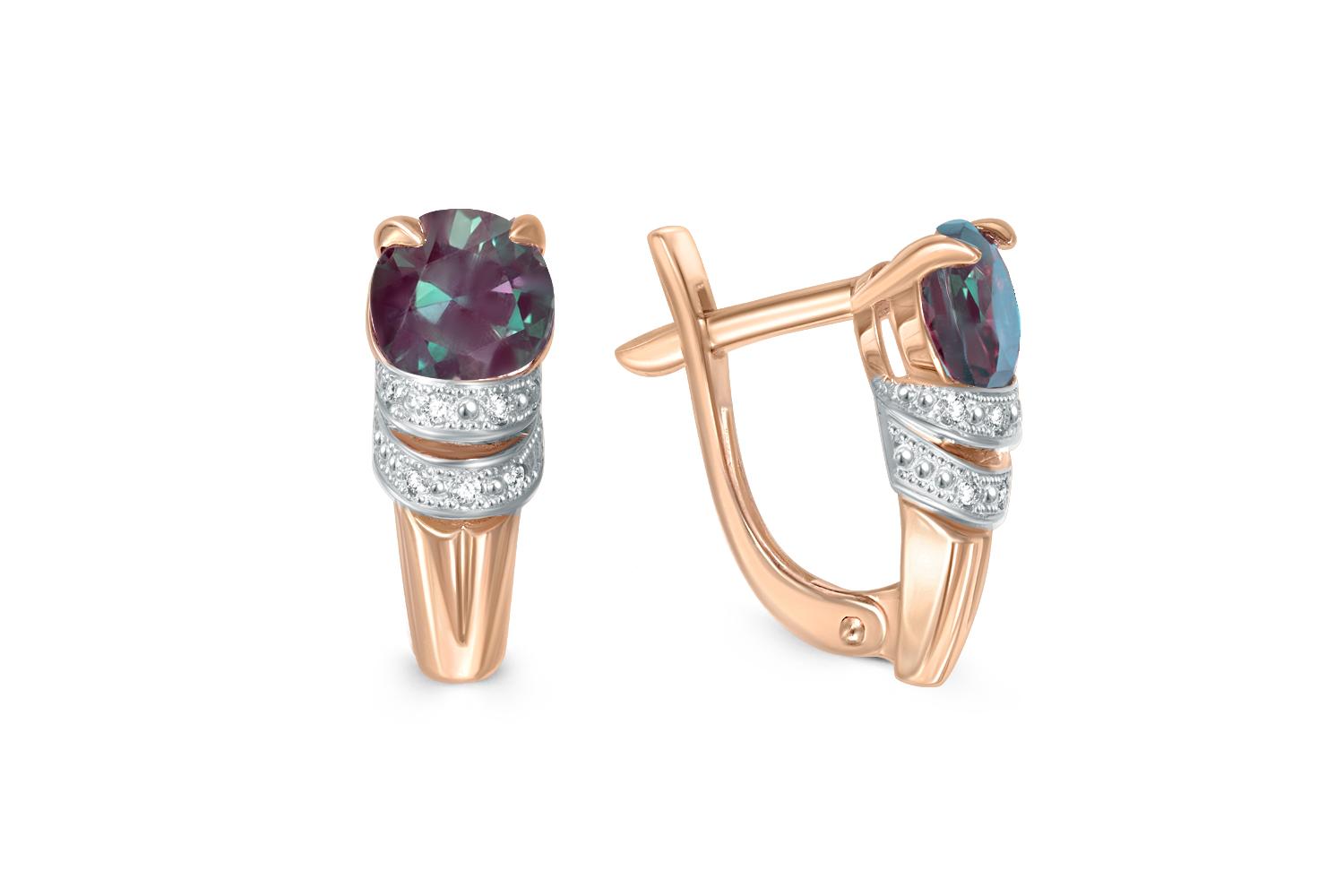 Мастера компании NEWGOLD, приложив всё свое мастерство и искусство, создали для Вас на нашем собственном производстве Серьги из красного золота с 2 александритами и 14 фианитами.