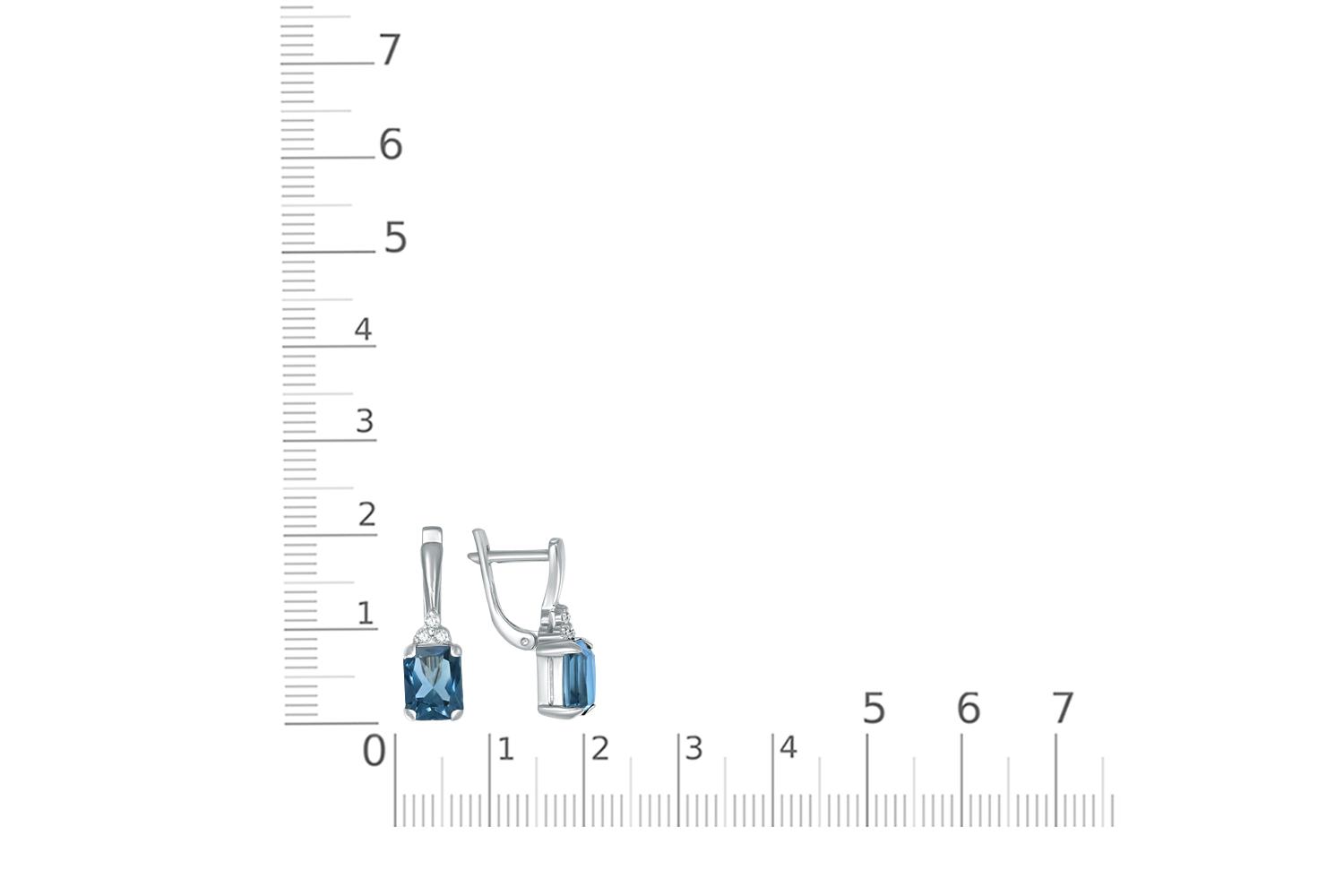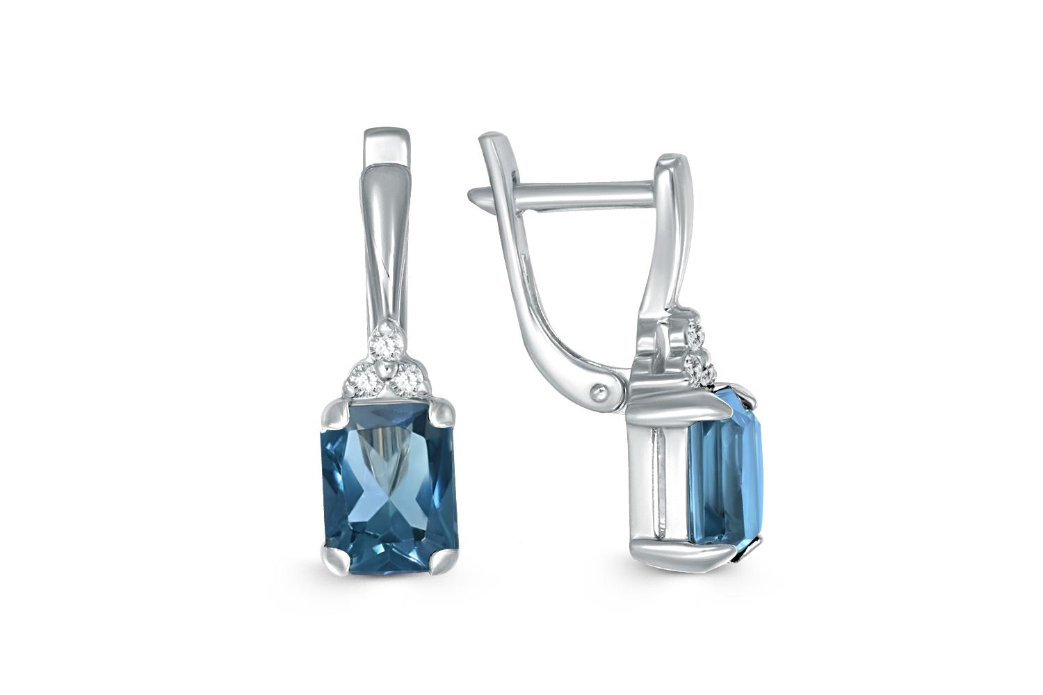 Мастера компании NEWGOLD, приложив всё свое мастерство и искусство, создали для Вас на нашем собственном производстве Серьги из белого золота с 2 топазами лондон и 6 фианитами.