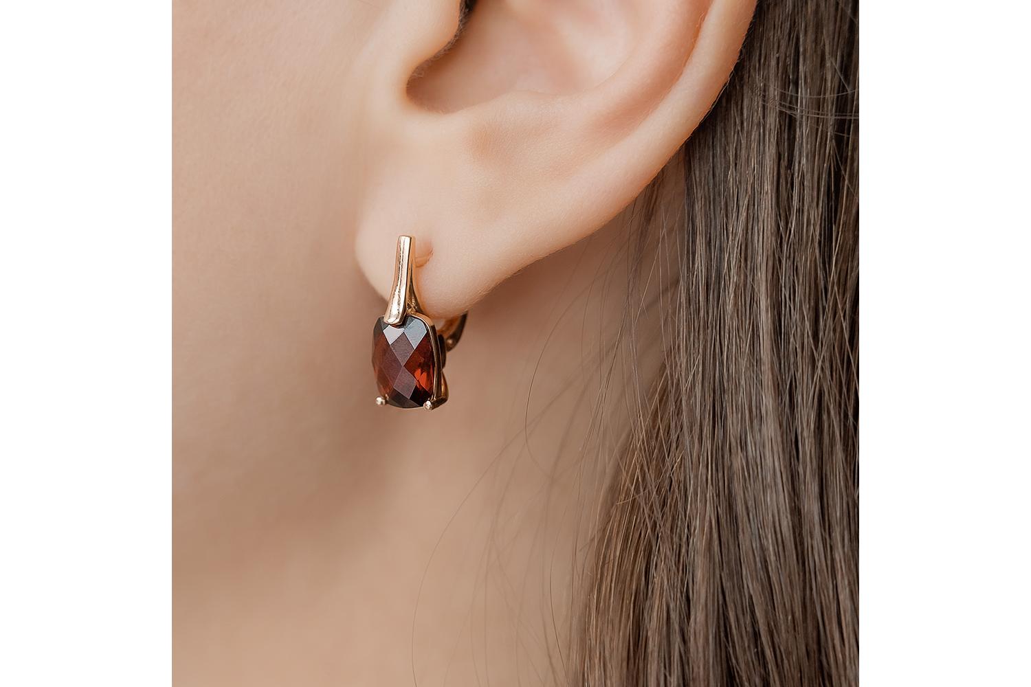 Мастера компании NEWGOLD, приложив всё свое мастерство и искусство, создали для Вас на нашем собственном производстве Серьги из красного золота с 2 гранатами.