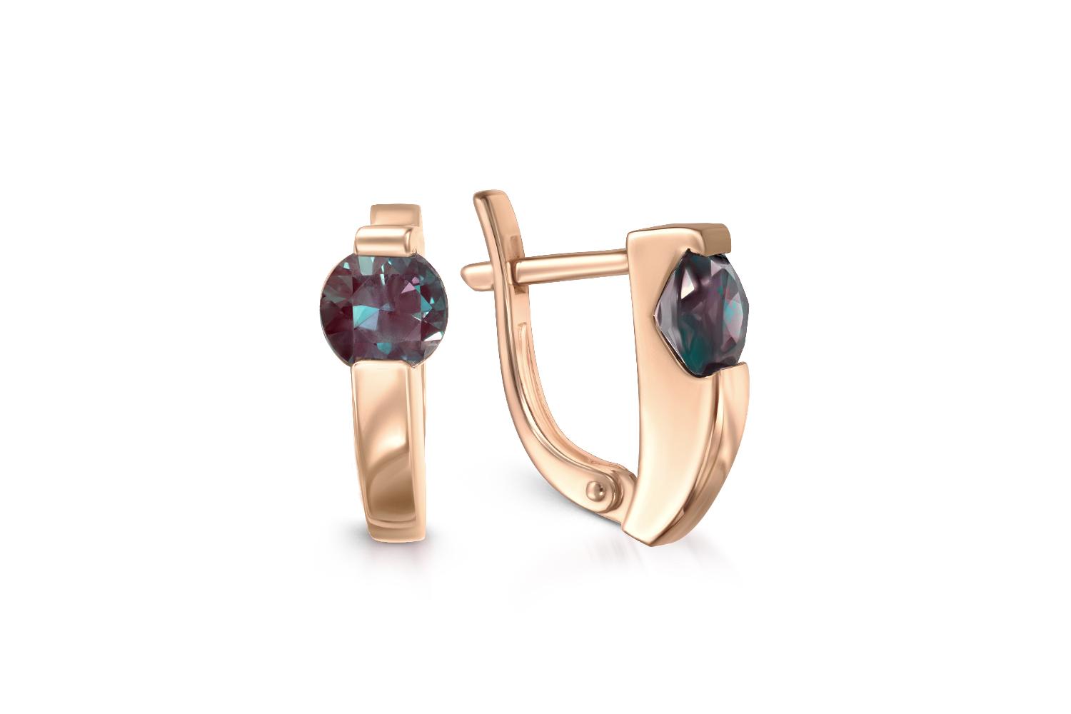 Закажите Серьги из красного золота с 2 александритами с получением в Москве через курьерскую службу доставки напрямую с нашего производственного склада завода NEWGOLD!