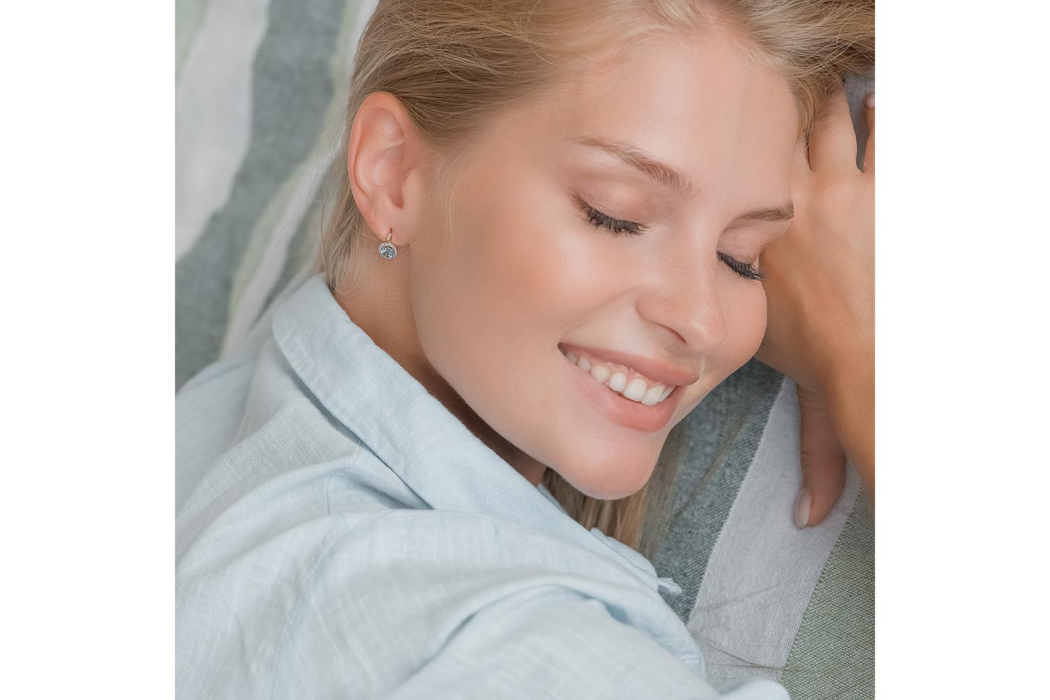 Закажите Серьги из красного золота с 2 топазами swiss и 32 фианитами с получением в Москве через курьерскую службу доставки напрямую с нашего производственного склада завода NEWGOLD!
