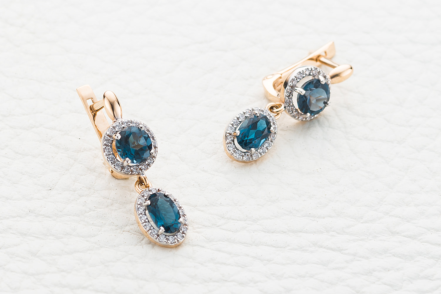 Мастера компании NEWGOLD, приложив всё свое мастерство и искусство, создали для Вас на нашем собственном производстве Серьги из красного золота с 4 топазами лондон и 64 фианитами.