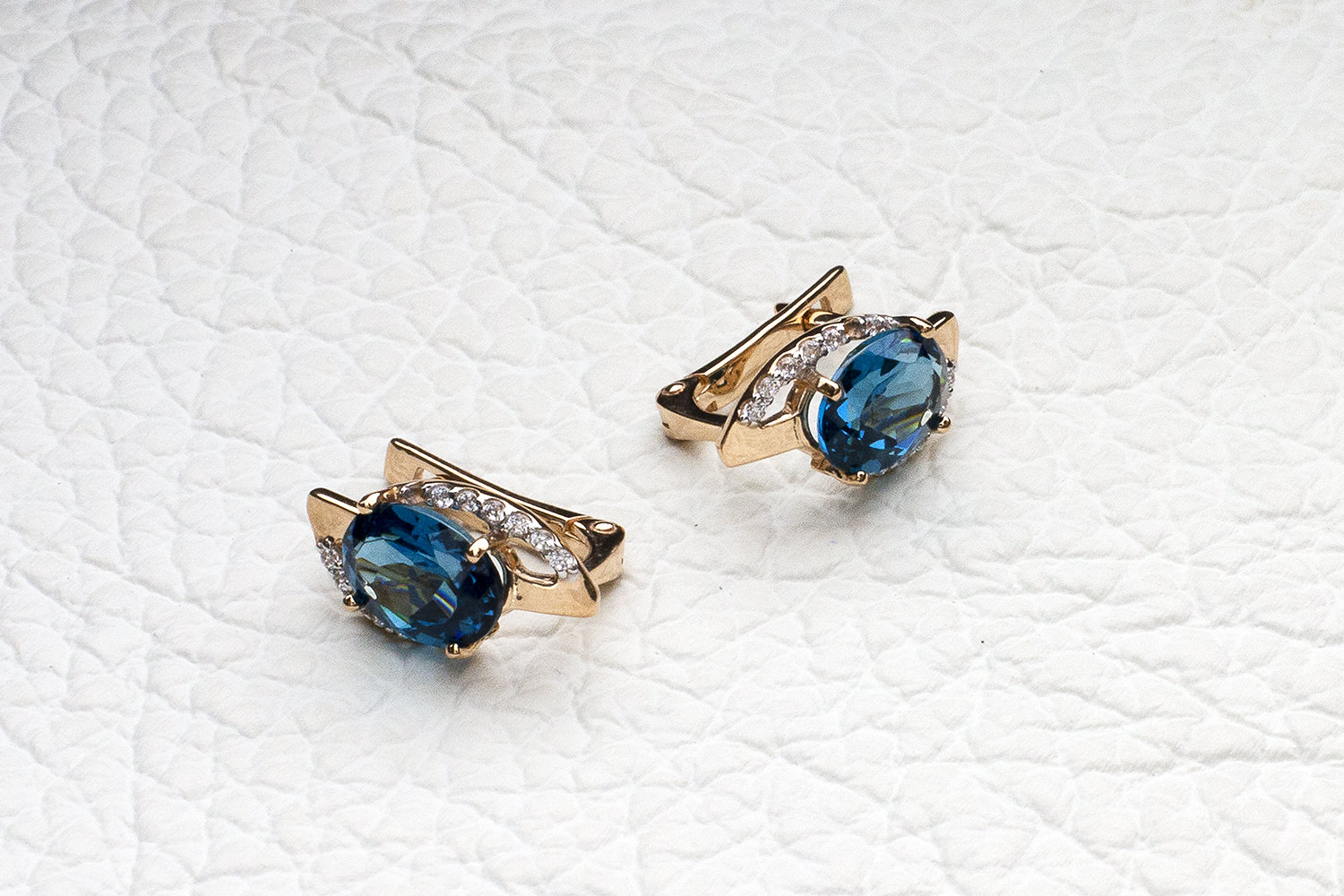 Кварц Топаз Лондон искусственный, количество 2 шт., огранка овал, размер 8ˣ6 ; Фианит б/цв, количество 28 шт., огранка круг, размер 1 мм
