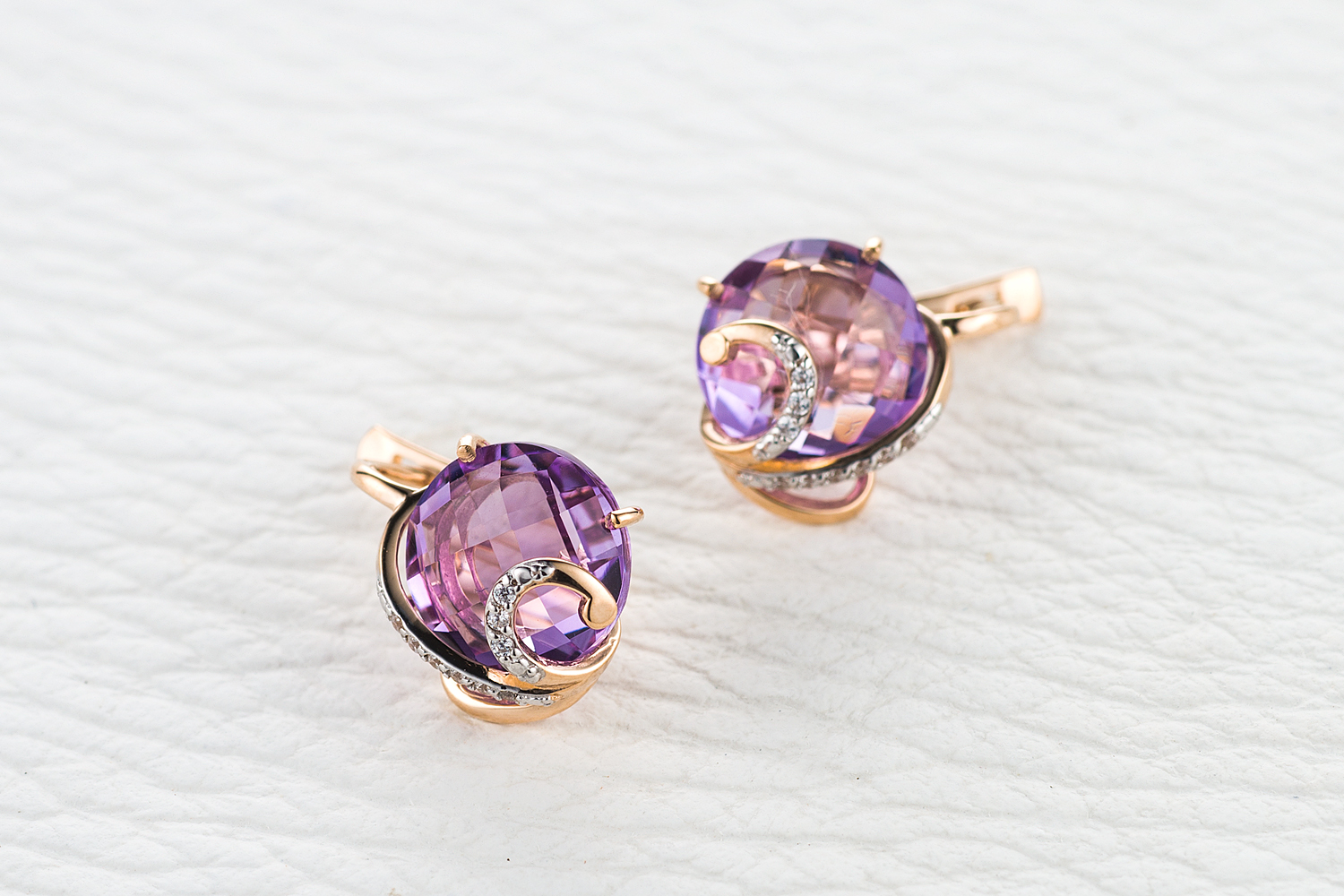 Мастера компании NEWGOLD, приложив всё свое мастерство и искусство, создали для Вас на нашем собственном производстве Серьги из красного золота с 20 аметистами.