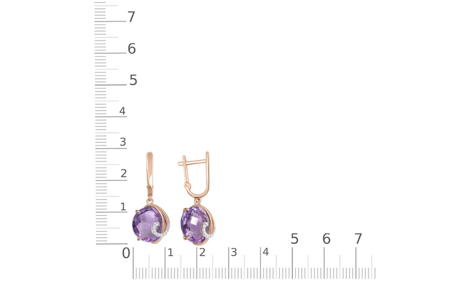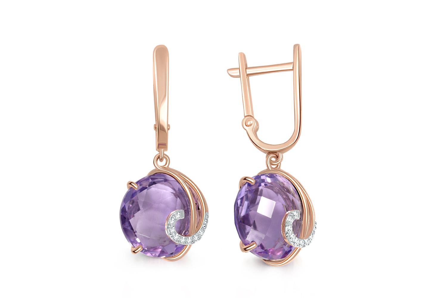 Мастера компании NEWGOLD, приложив всё свое мастерство и искусство, создали для Вас на нашем собственном производстве Серьги из красного золота с 2 аметистами и 16 фианитами.