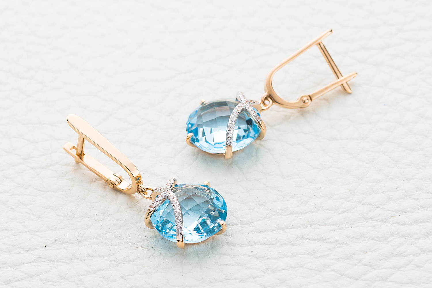 Мастера компании NEWGOLD, приложив всё свое мастерство и искусство, создали для Вас на нашем собственном производстве Серьги из красного золота с 2 топазами sky и 32 фианитами.