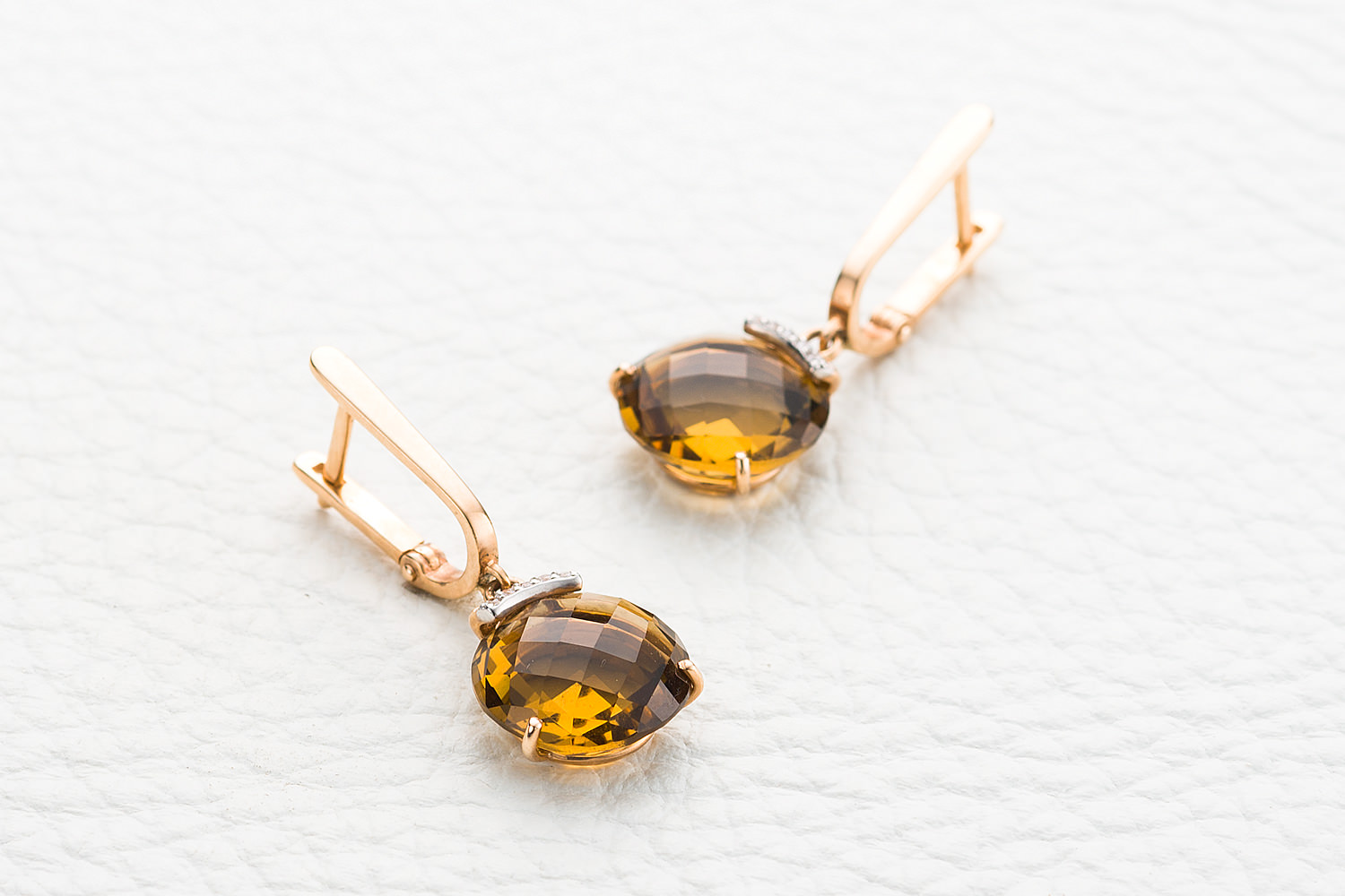 Мастера компании NEWGOLD, приложив всё свое мастерство и искусство, создали для Вас на нашем собственном производстве Серьги из красного золота с 2 цитринами и 10 фианитами.
