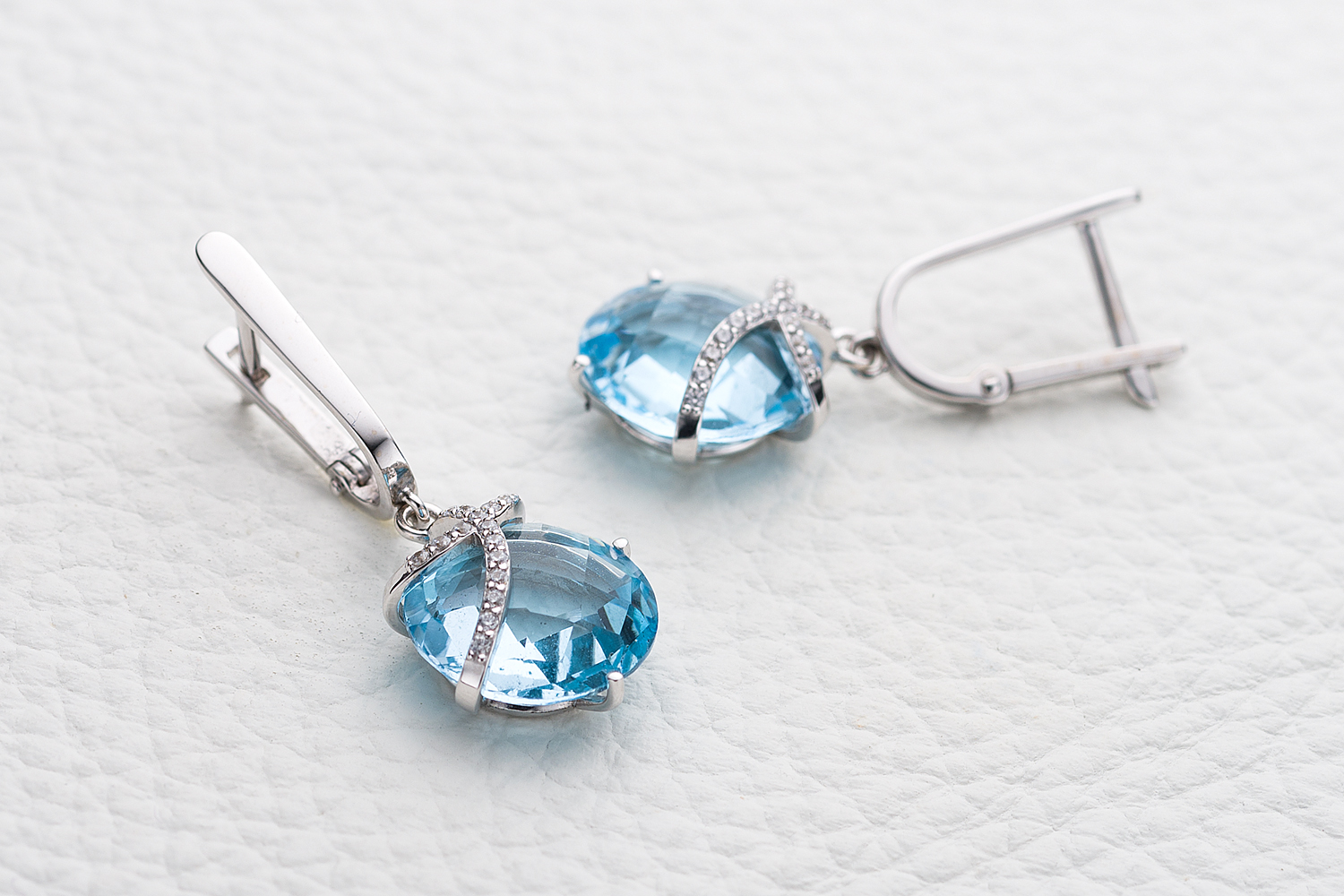 Мастера компании NEWGOLD, приложив всё свое мастерство и искусство, создали для Вас на нашем собственном производстве Серьги из белого золота с 2 топазами sky и 32 фианитами.