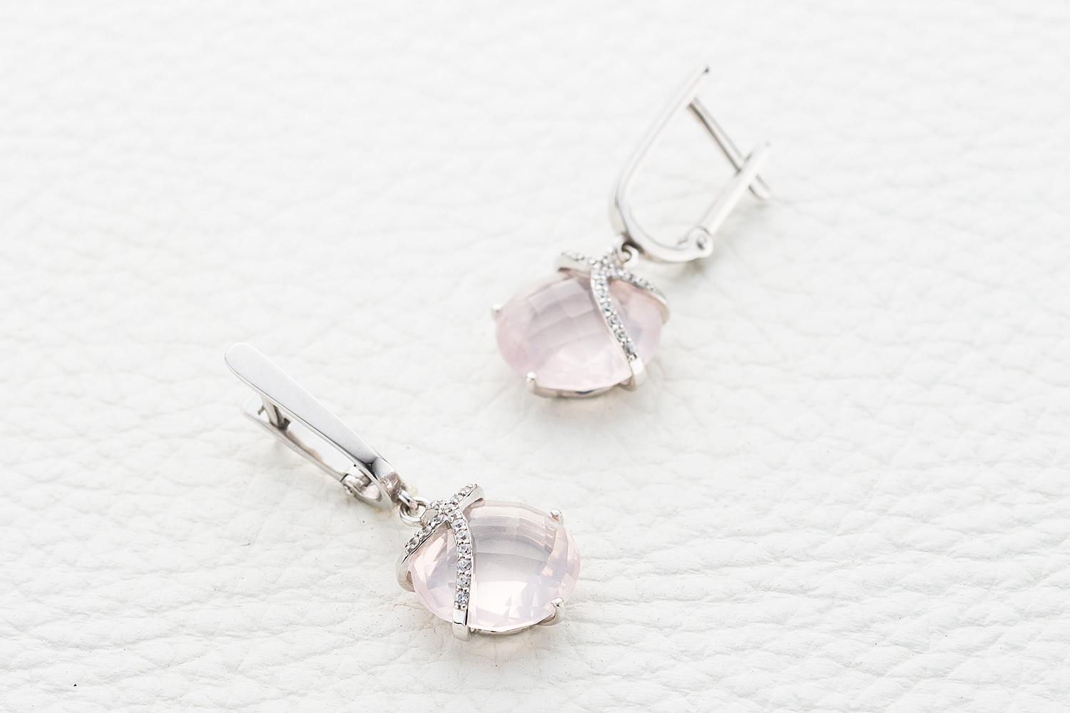 Мастера компании NEWGOLD, приложив всё свое мастерство и искусство, создали для Вас на нашем собственном производстве Серьги из белого золота с 2 кварцами и 32 фианитами.