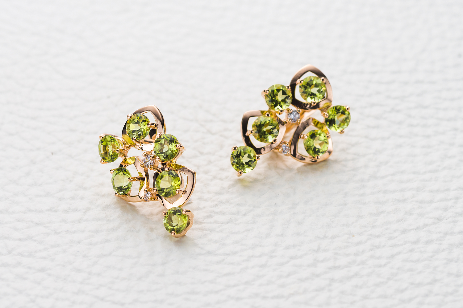 Мастера компании NEWGOLD, приложив всё свое мастерство и искусство, создали для Вас на нашем собственном производстве Серьги из красного золота с 12 хризолитами и 4 фианитами.