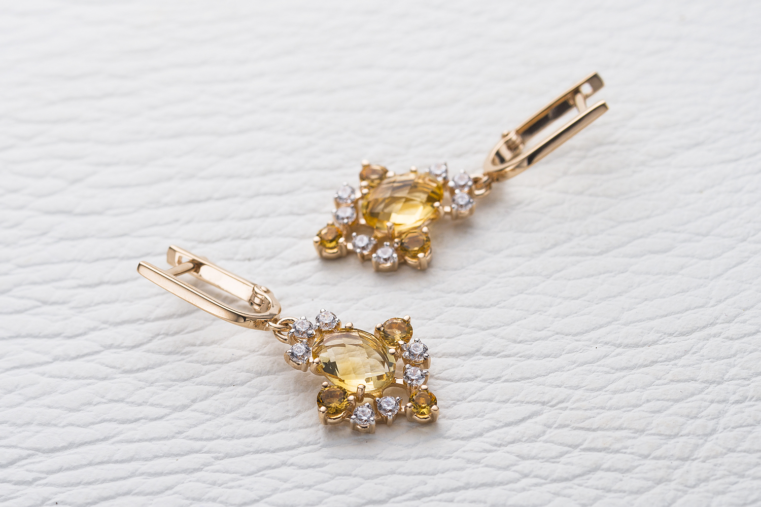 Мастера компании NEWGOLD, приложив всё свое мастерство и искусство, создали для Вас на нашем собственном производстве Серьги из красного золота с 8 цитринами и 14 фианитами.