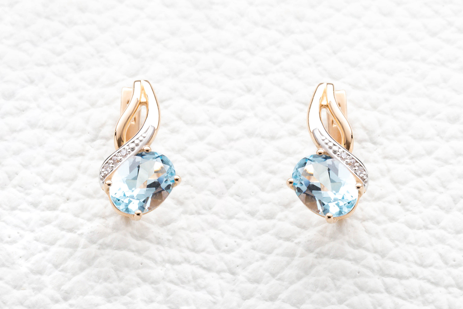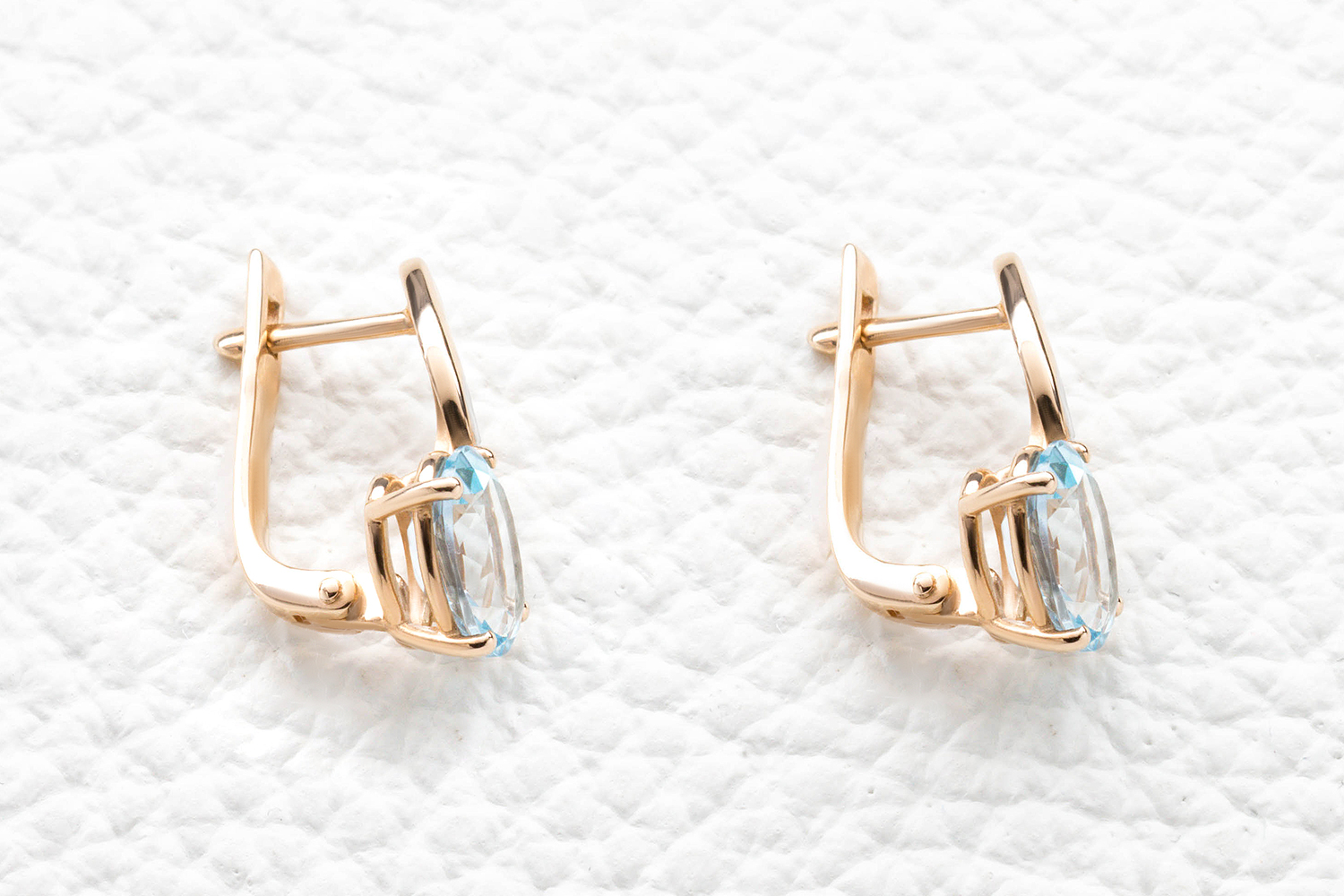 Мастера компании NEWGOLD, приложив всё свое мастерство и искусство, создали для Вас на нашем собственном производстве Серьги из красного золота с 2 топазами sky и 6 фианитами.