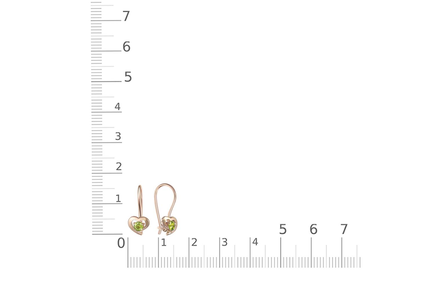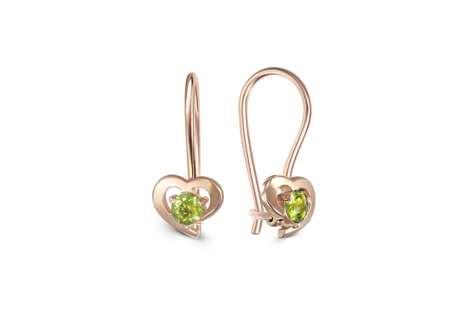 Мастера компании NEWGOLD, приложив всё свое мастерство и искусство, создали для Вас на нашем собственном производстве Детские серьги Сердца из красного золота с 2 хризолитами.
