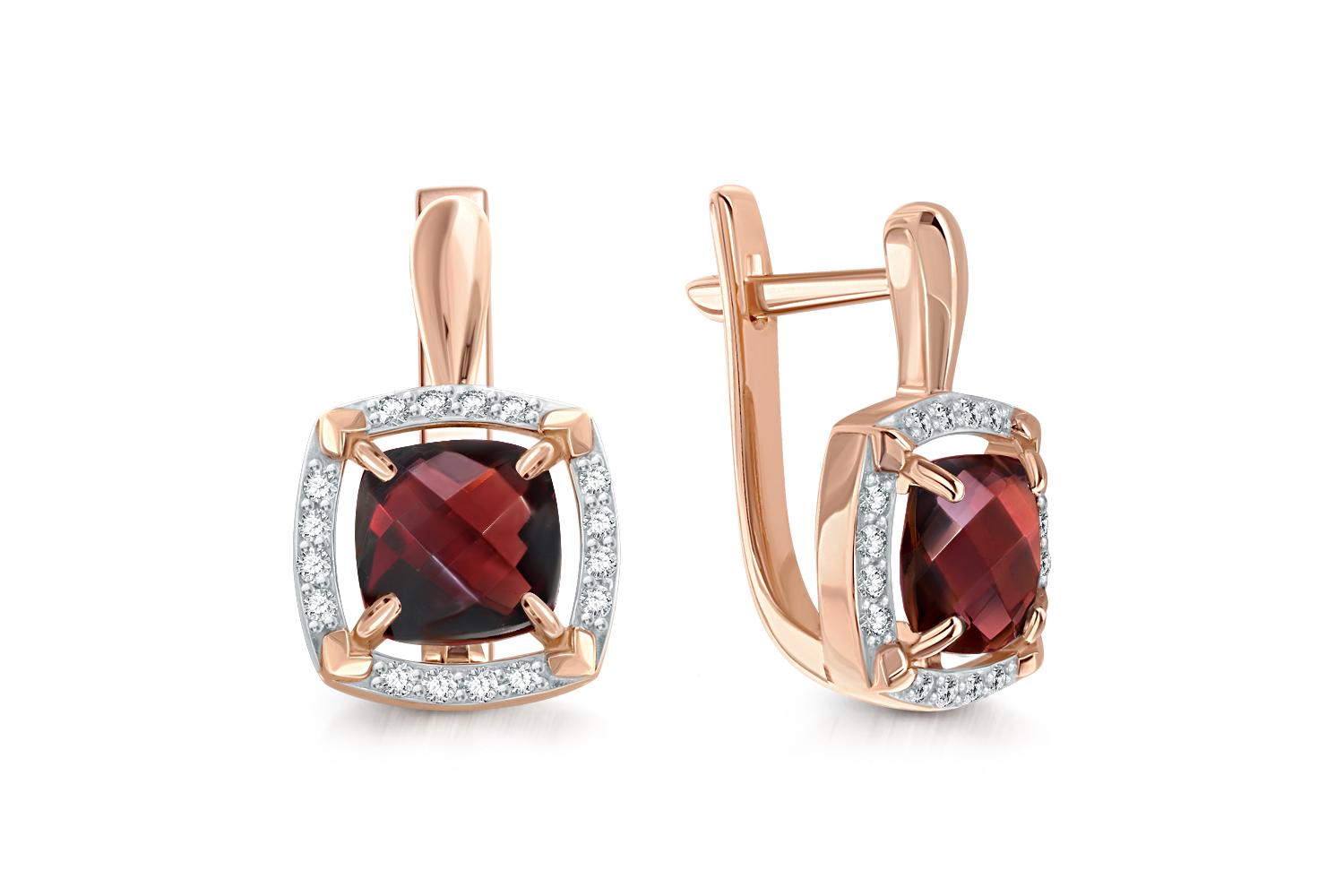 Мастера компании NEWGOLD, приложив всё свое мастерство и искусство, создали для Вас на нашем собственном производстве Серьги из красного золота с 2 гранатами и 32 фианитами.