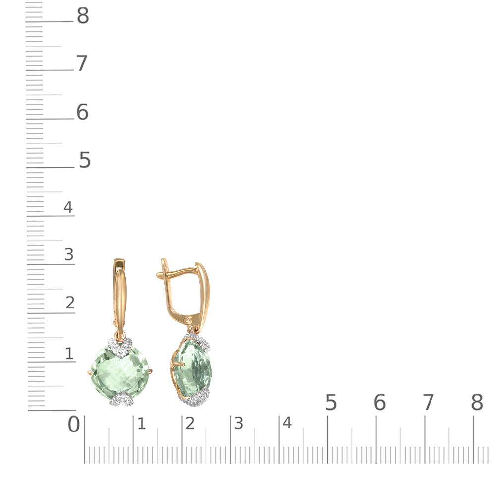 Аметист зеленый натуральный, количество 2 шт., огранка круг-бриолет, размер 12 мм ; Фианит б/цв, количество 12 шт., огранка круг, размер 1,25 мм