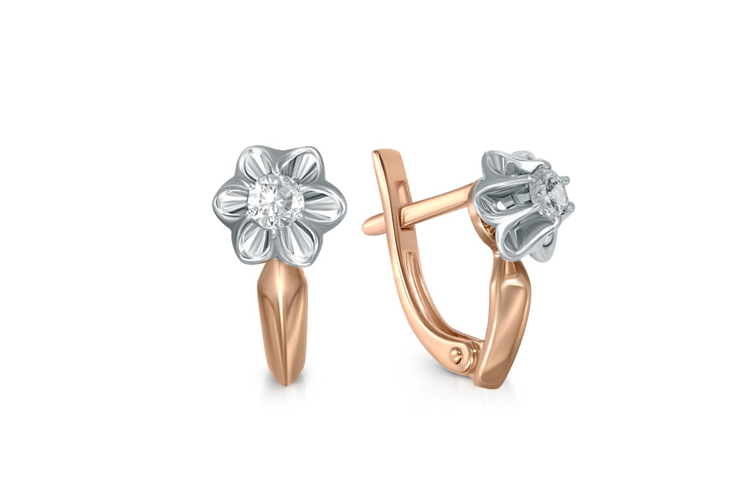 Мастера компании NEWGOLD, приложив всё свое мастерство и искусство, создали для Вас на нашем собственном производстве Серьги Цветы из красного золота с 2 фианитами.
