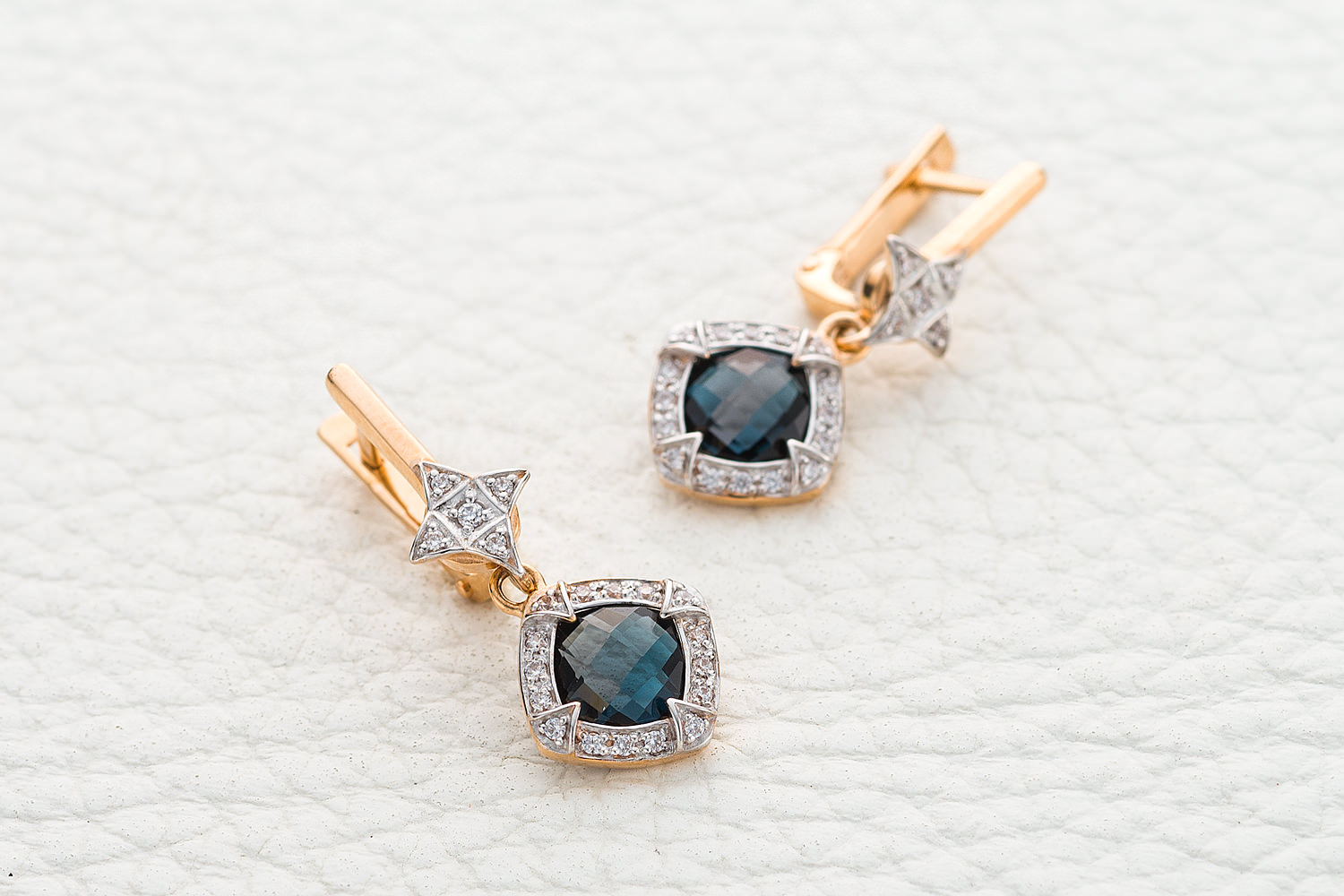 Мастера компании NEWGOLD, приложив всё свое мастерство и искусство, создали для Вас на нашем собственном производстве Серьги из красного золота с 2 топазами лондон и 42 фианитами.