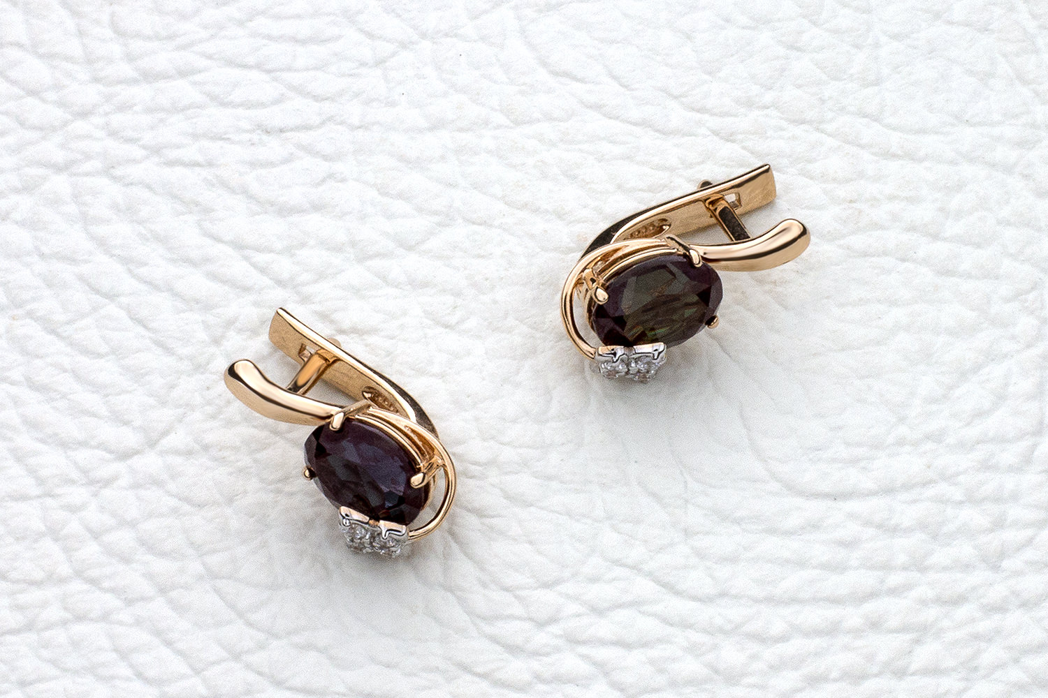 Мастера компании NEWGOLD, приложив всё свое мастерство и искусство, создали для Вас на нашем собственном производстве Серьги Бабочки из красного золота с 2 александритами и 8 фианитами.