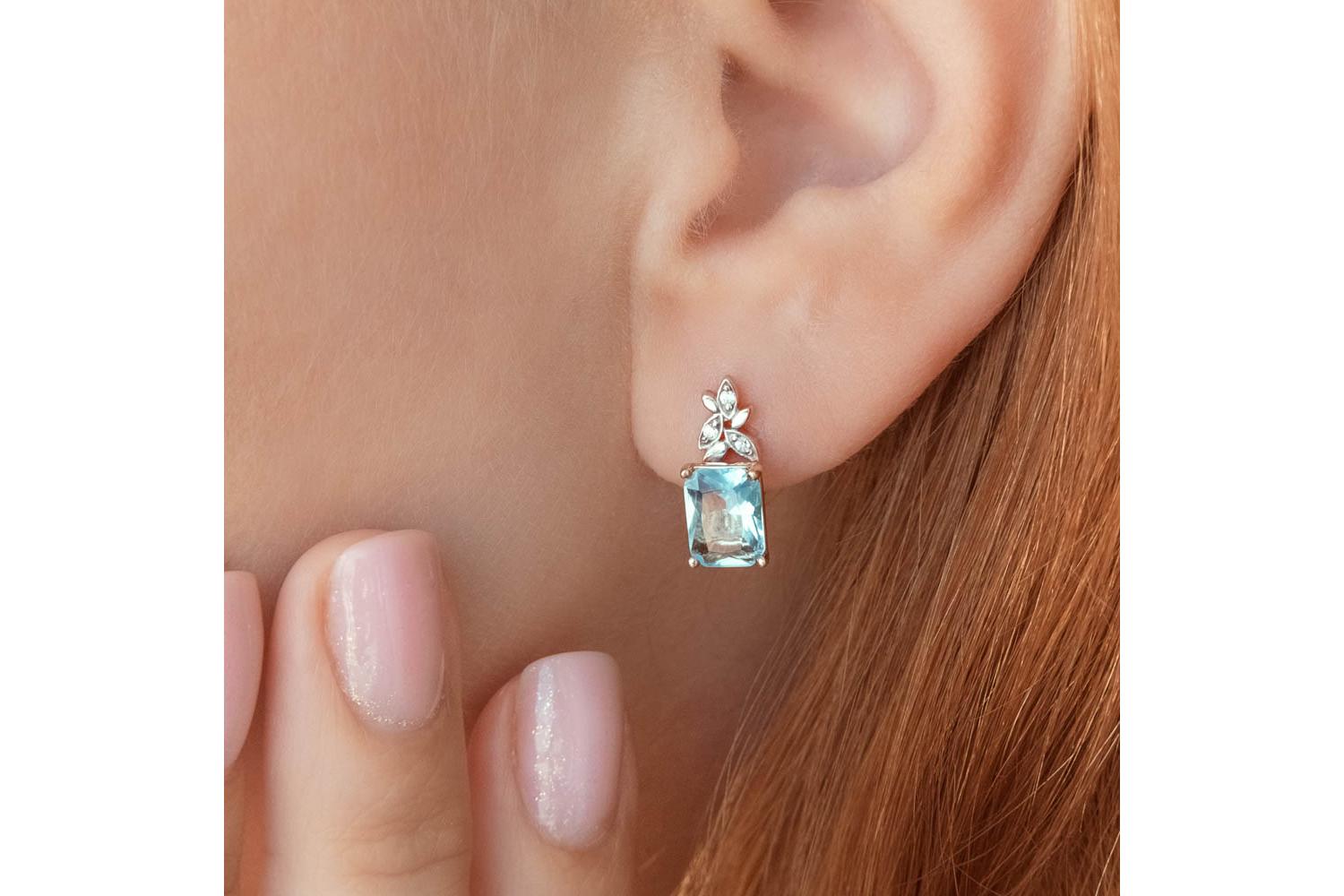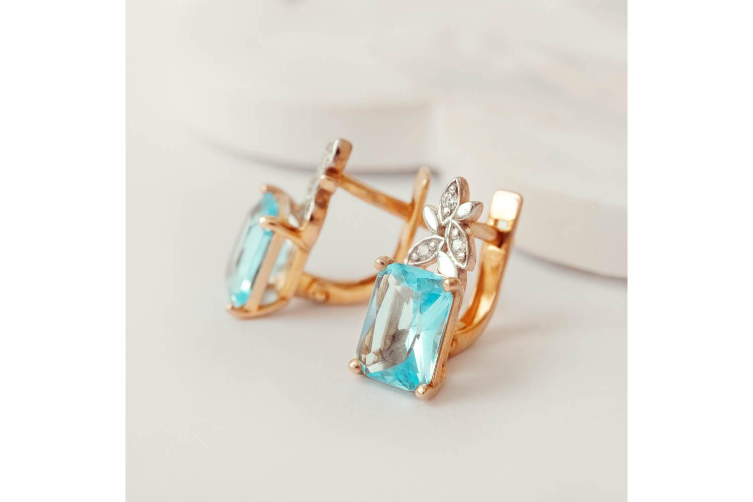 Мастера компании NEWGOLD, приложив всё свое мастерство и искусство, создали для Вас на нашем собственном производстве Серьги Цветы из красного золота с 2 топазами sky и 6 фианитами.